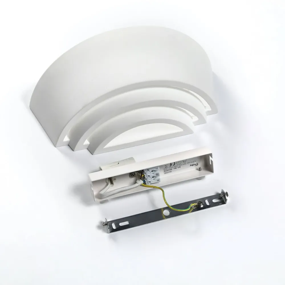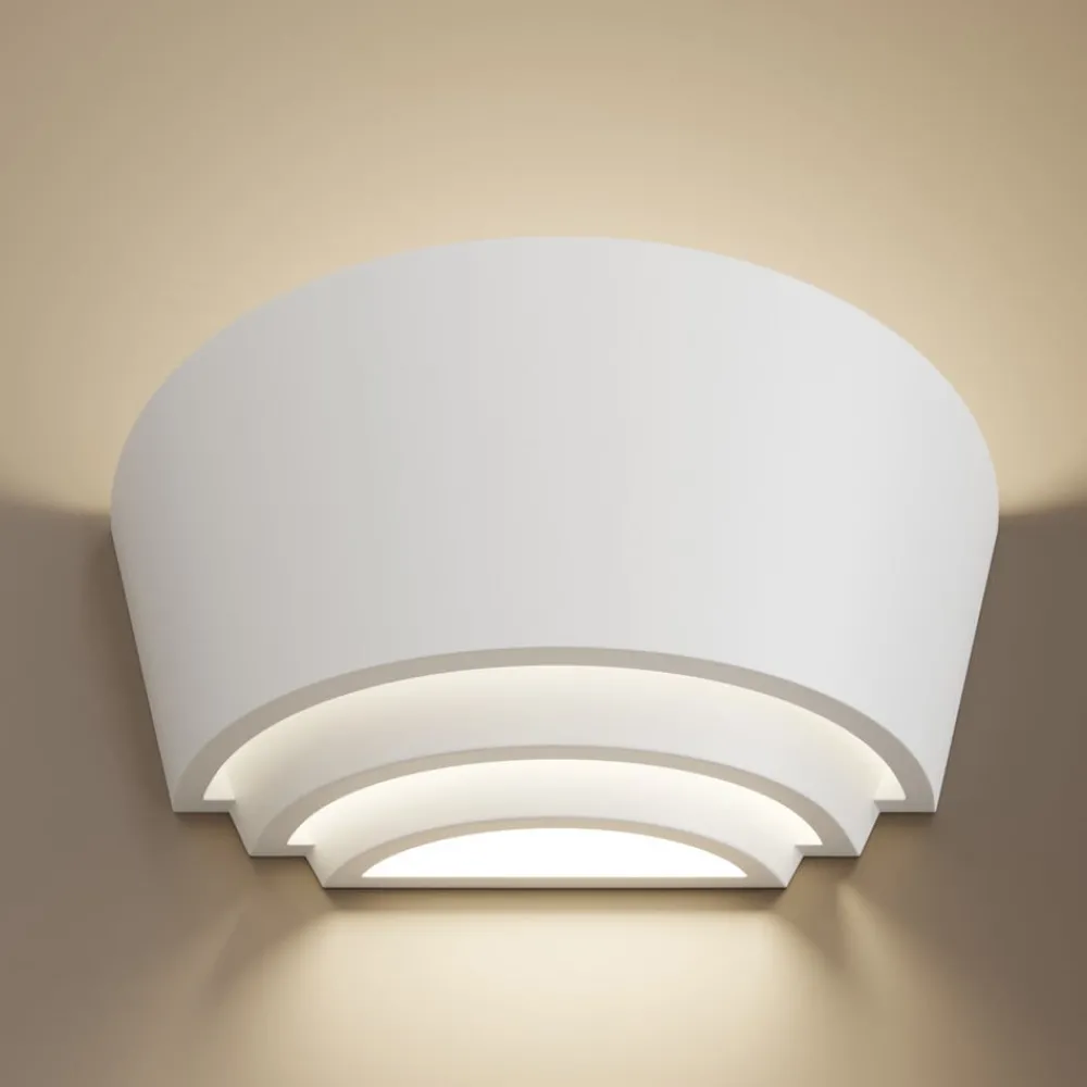 Hvit, halvrund gipsvegglampe Azriel med en tretrinns utforming som kan males på