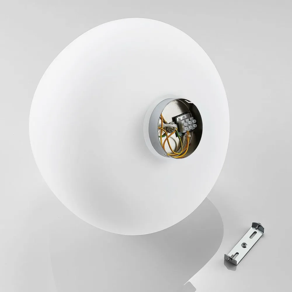 Hvit glasstaklampe Bibiane med rund form