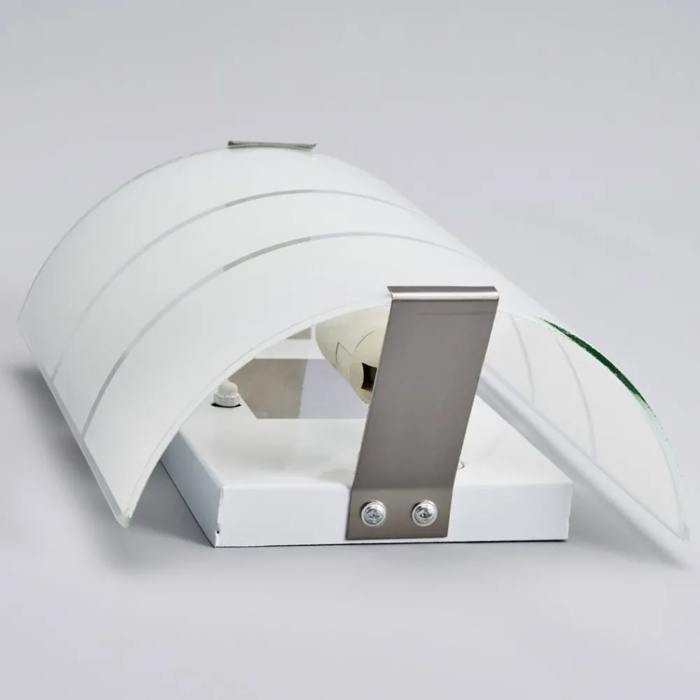 Glassvegglampen Vincenzo er et godt alternativ, da den med sin minimalistiske glassdesign med satinert overflate tilbyr en stilfull tilleggsbelysning som bidrar til en behagelig og innbydende atmosfære i rommet. Glasskjermen er optisk oppdelt i 3 deler ved at den satinerte delen blir brutt av to klare striper. Dette gir lampen et unikt og elegant utseende. E14 pære med maks 40 Watt kan settes inn i lampen. Pæren kan gjerne være energisparende eller LED-pære.