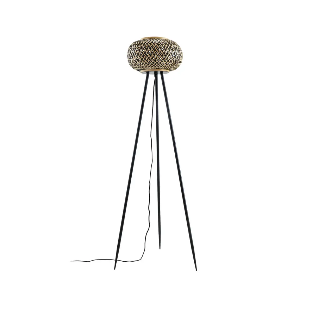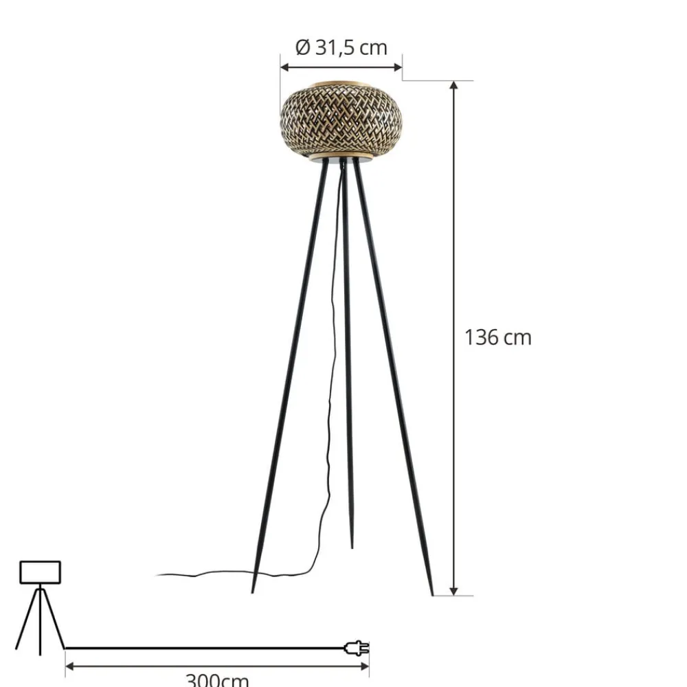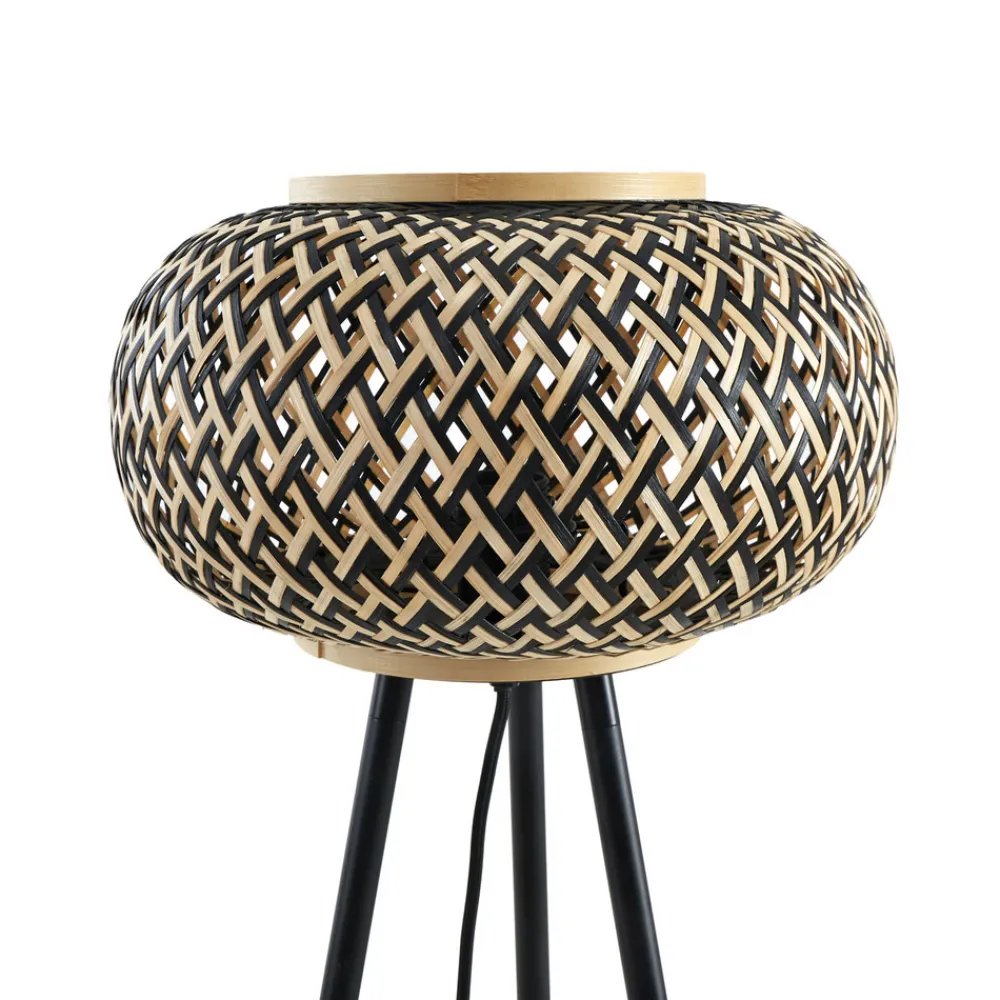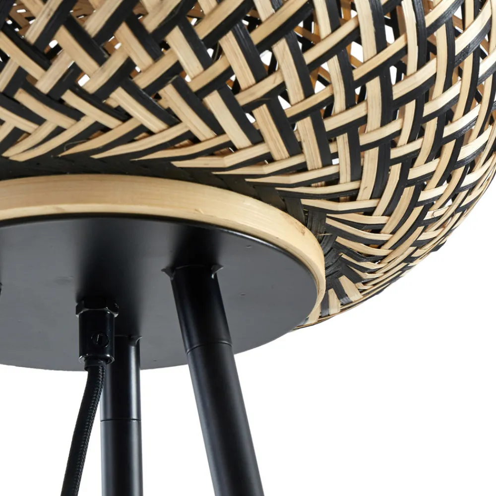 Lindby gulvlampe Nerys, svart, bambus, Ø 31,5 cm, stativ
