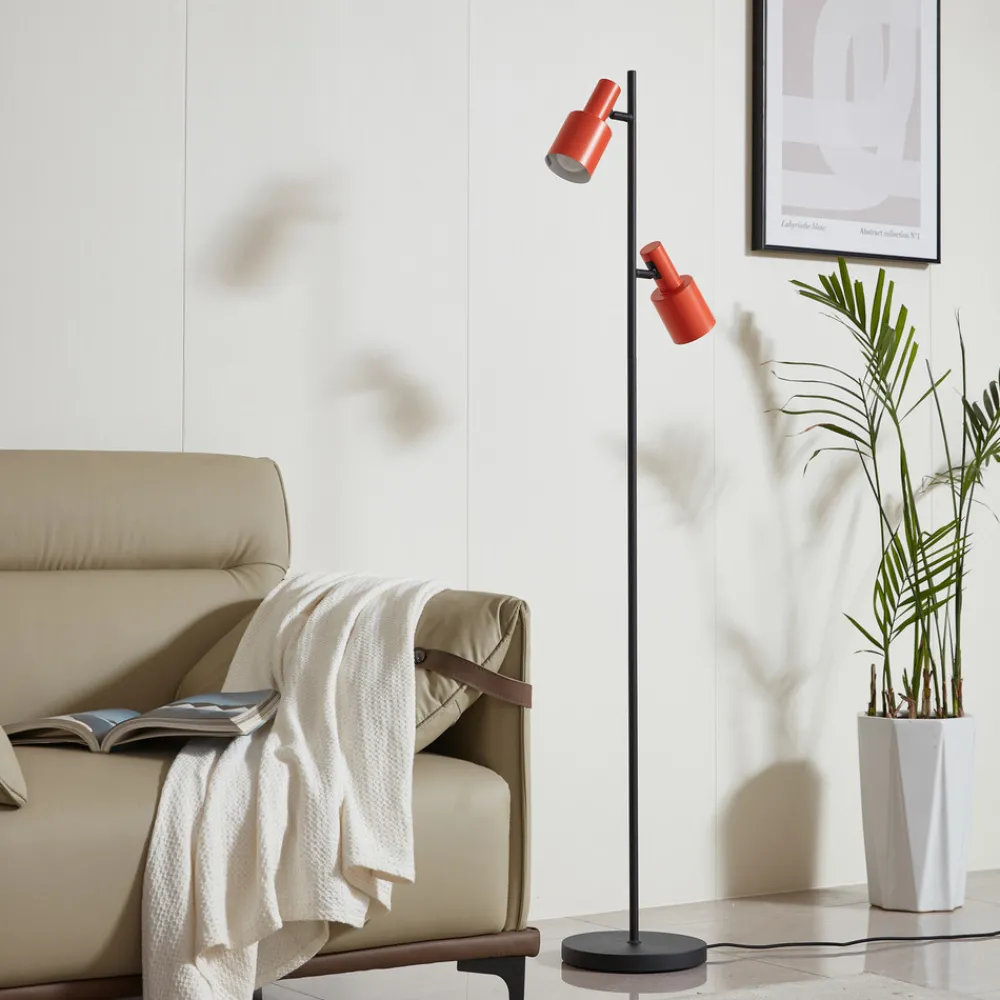 Smal Ovelia gulvlampe med to justerbare skjermer Gulvlampen Ovelia er en vakker lyskilde som kan brukes i en rekke ulike miljøer. Den skaper en inspirerende atmosfære, enten det er på kontoret eller i stuen. Med sin iøynefallende design og sterke farge er den et blikkfang i ethvert rom. De to lampeskjermene er justerbare, slik at du kan tilpasse vinkelen på lyset som sendes ut. Ovelia slås av og på ved hjelp av fotbryteren som er integrert i kabelen.