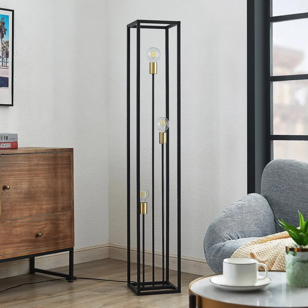 Lindby gulvlampe Tiliane, svart, metall, 3 lyskilder, 153 cm| Gulvlamper