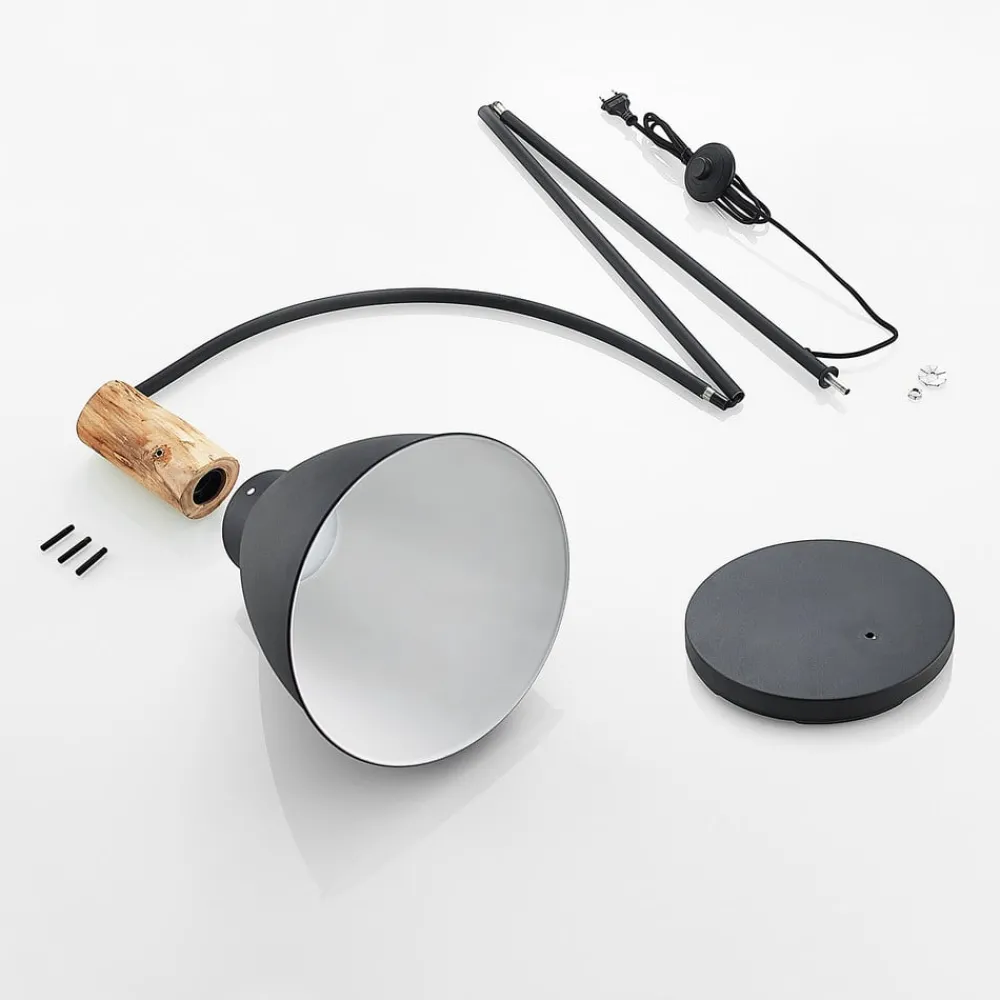 Lindby gulvlampe Trebale, svart, tre, 154 cm, E27| Gulvlamper