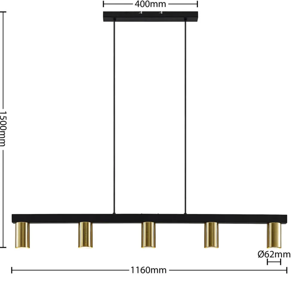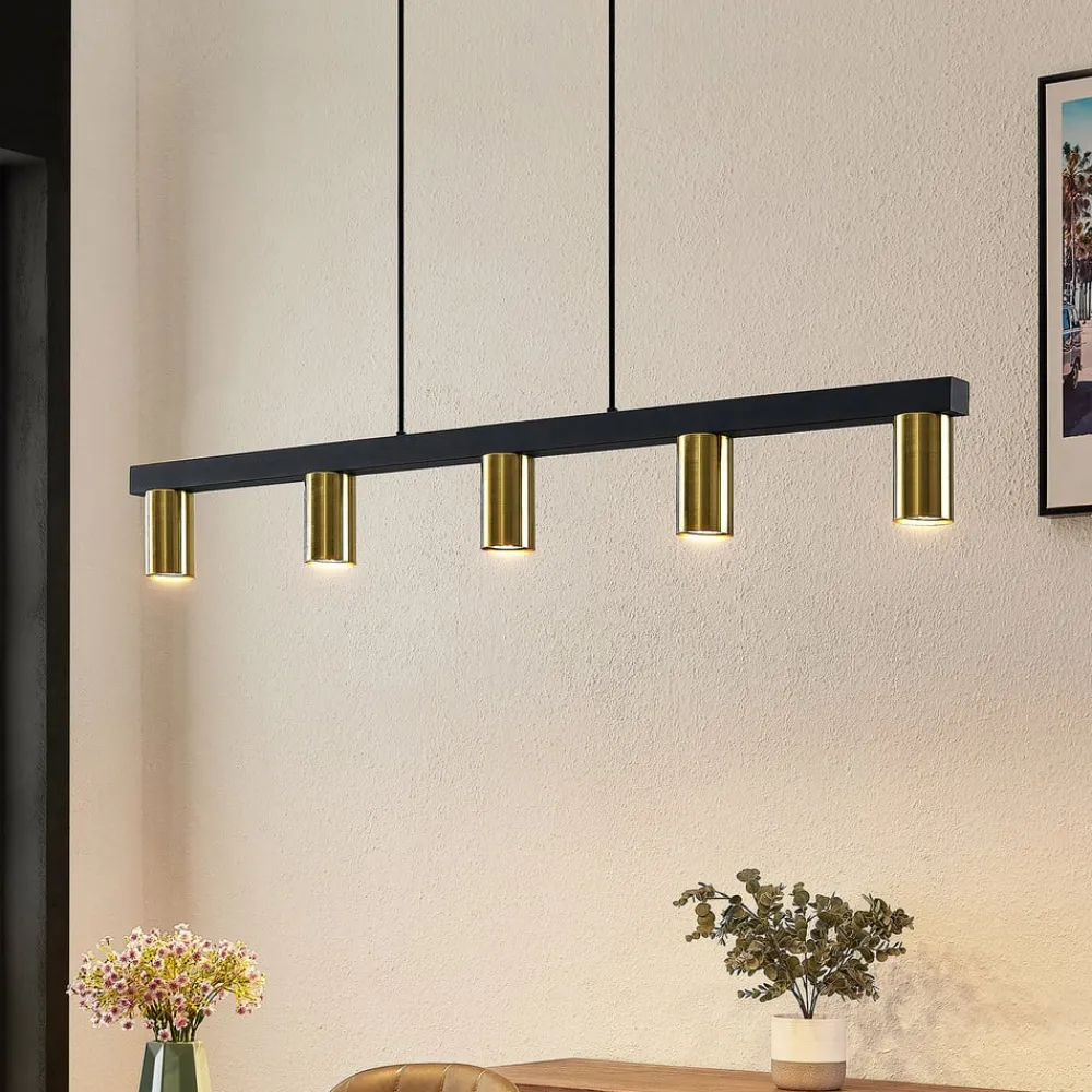 Lindby hengelampe Baliko, svart/messing, 5 lyskilder, GU10| Pendellamper