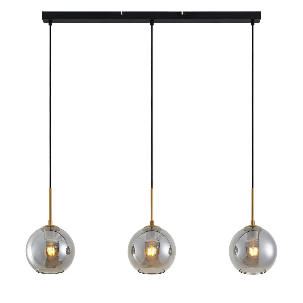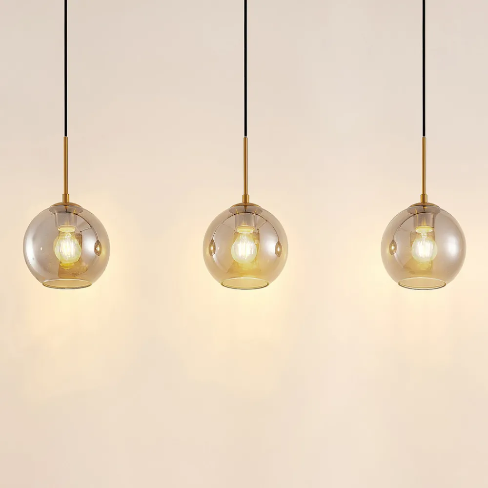 Lindby hengelampe Hiwana, røykgrå, glass, 3 lyskilder