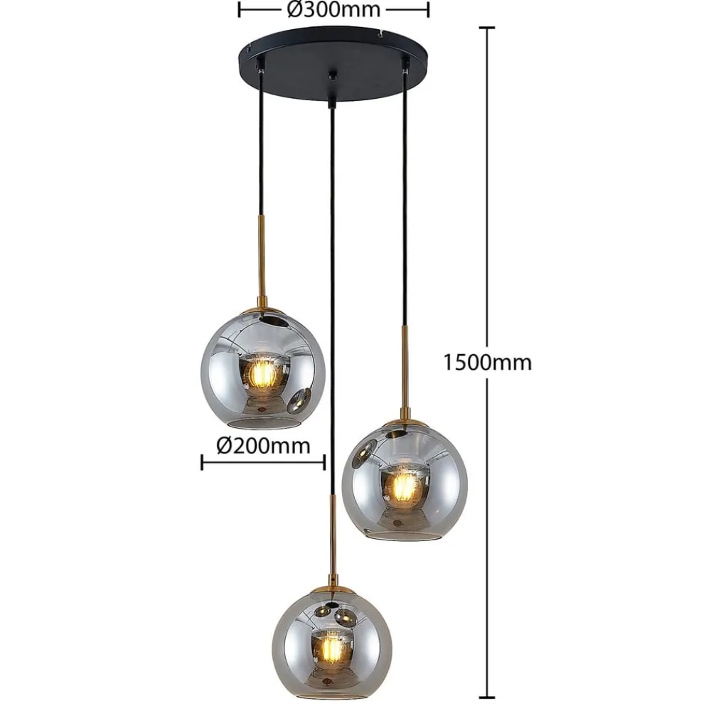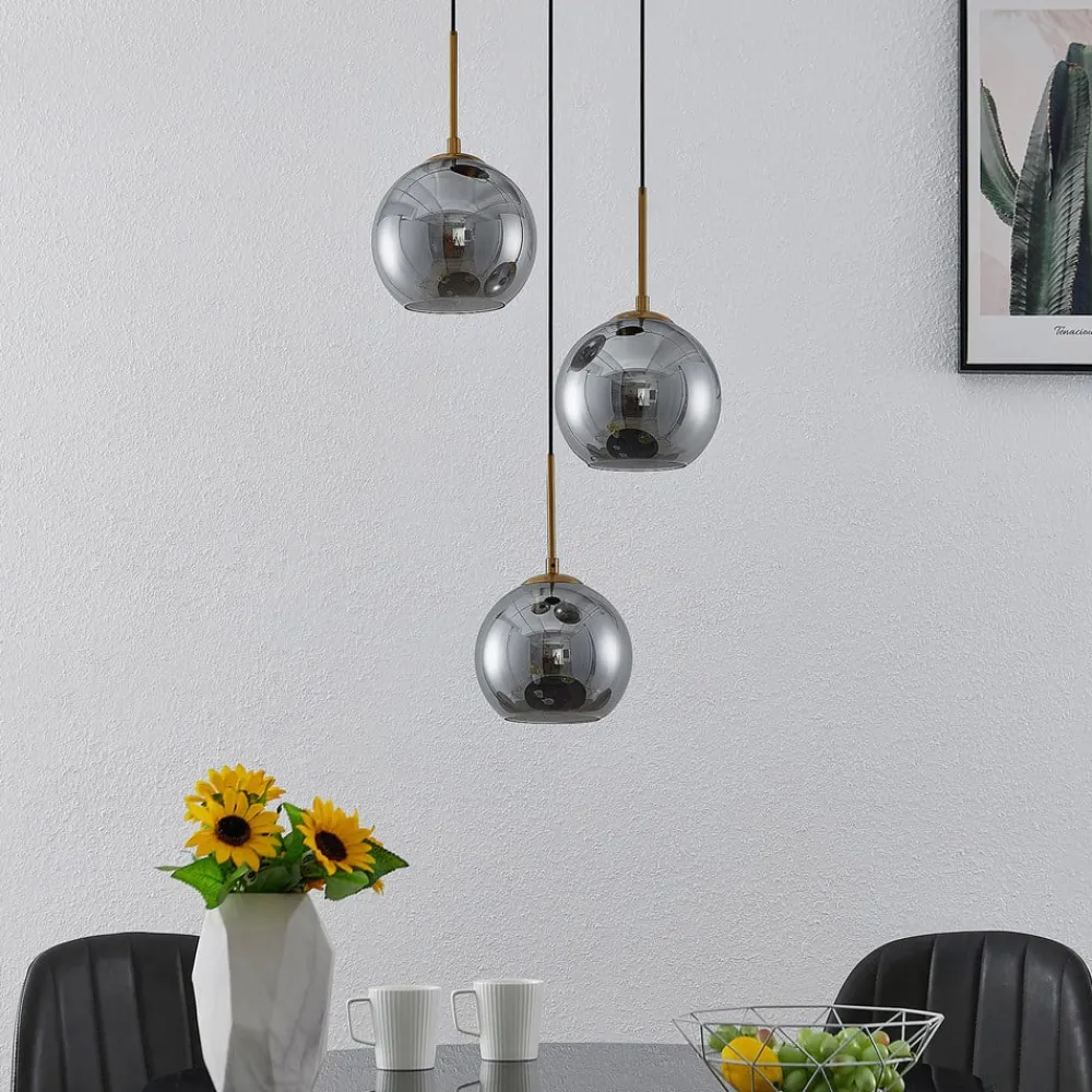 Lindby hengelampe Jurian, 32 cm, 3 lyskilder, bronse, røyk, glass| Pendellamper