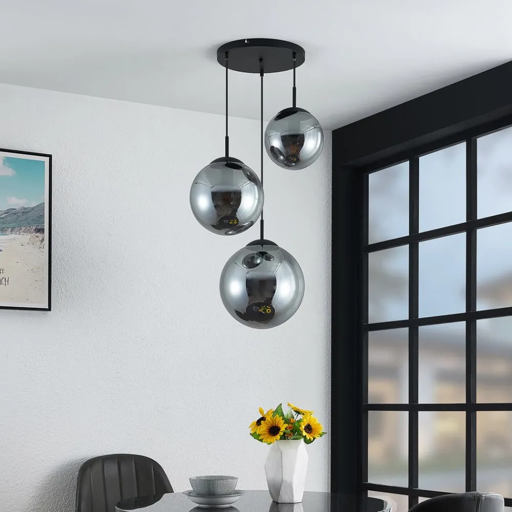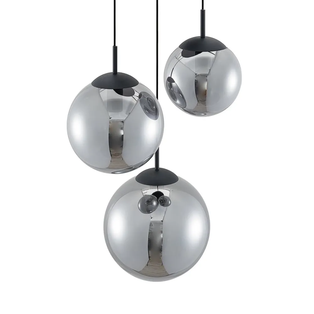 Lindby hengelampe Teeja, smoke, 3 lyskilder, Ø52cm, glass, E27| Design- Og Hotellbelysning|Pendellamper