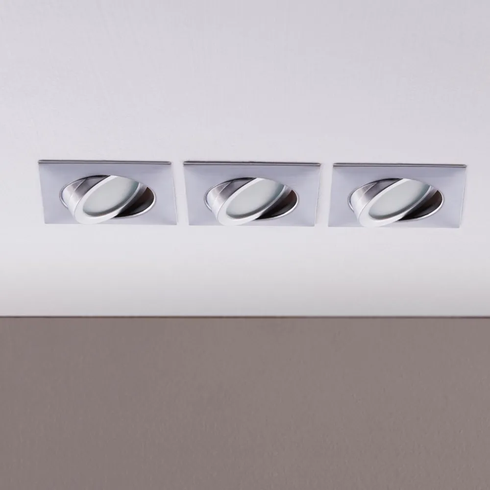 Innbyggingslamper i krom med LED, kantet sett med 3 stk