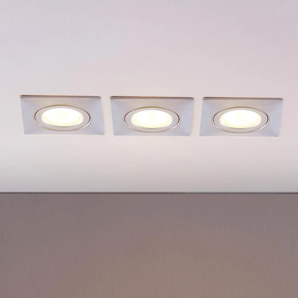 Lindby Innbyggingslamper i krom med LED, kantet sett med 3 stk Hot