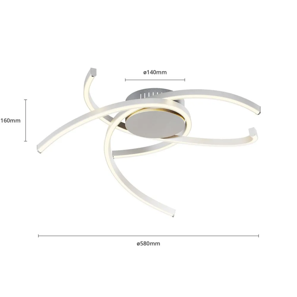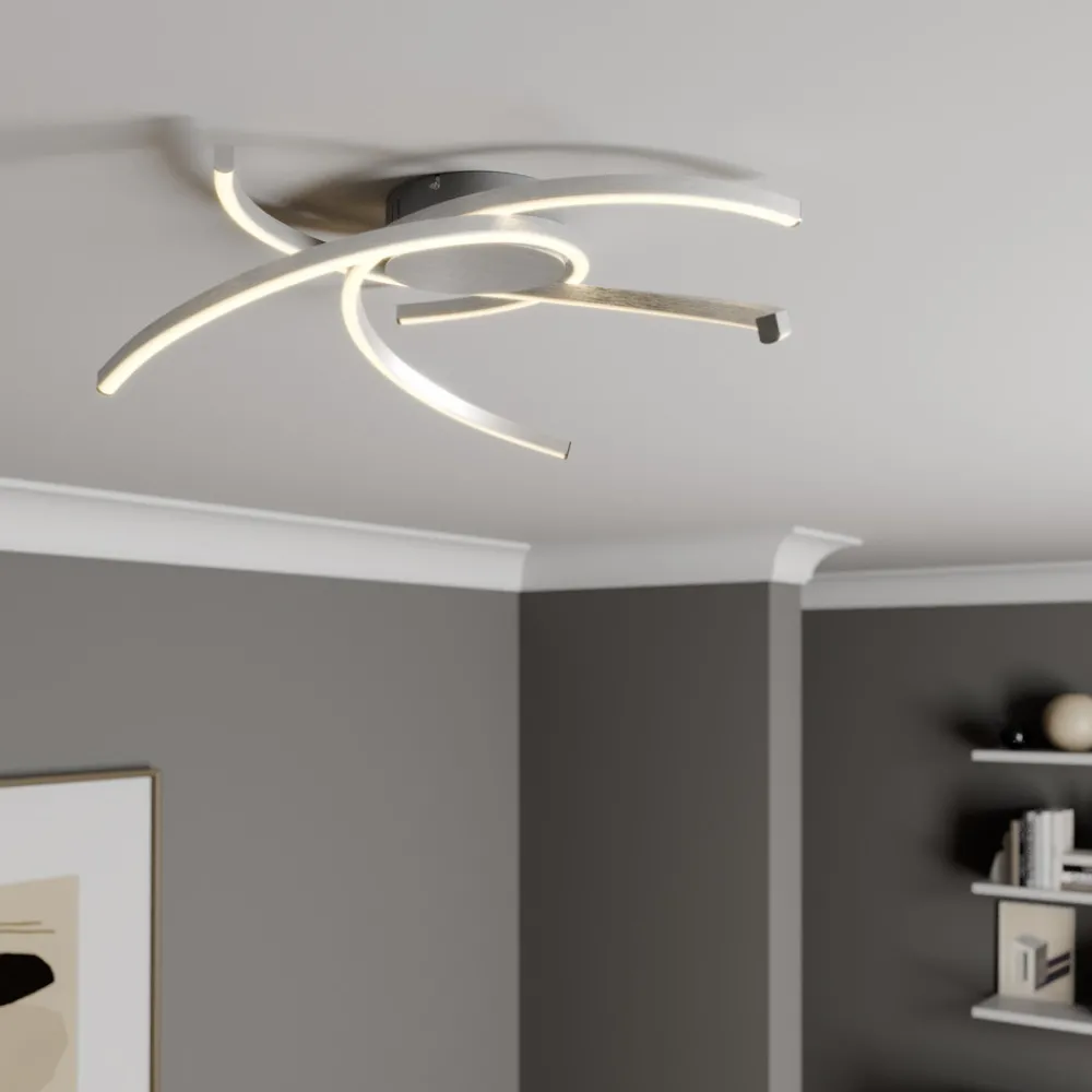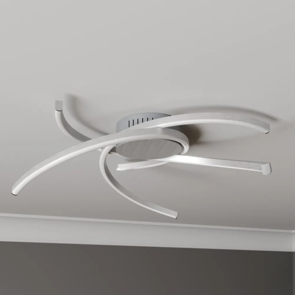 Katris er utvilsomt en veldig moderne lyskilde som også passer godt til puristisk interiør. Lampekroppen består av tre halvsirkler, eller hestesko, som er kjent for å være et symbol på lykke. Med bryteren kan du dimme LED-taklampen i tre trinn og variere lysstyrken nøyaktig. Overflatens aluminiumfarge understreker det moderne utseendet på en vakker måte.