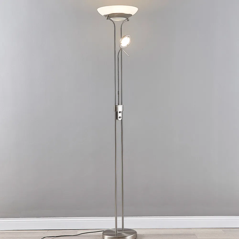 Lindby LED-gulvlampe Yveta, nikkelfarget, metall, dimbar Online