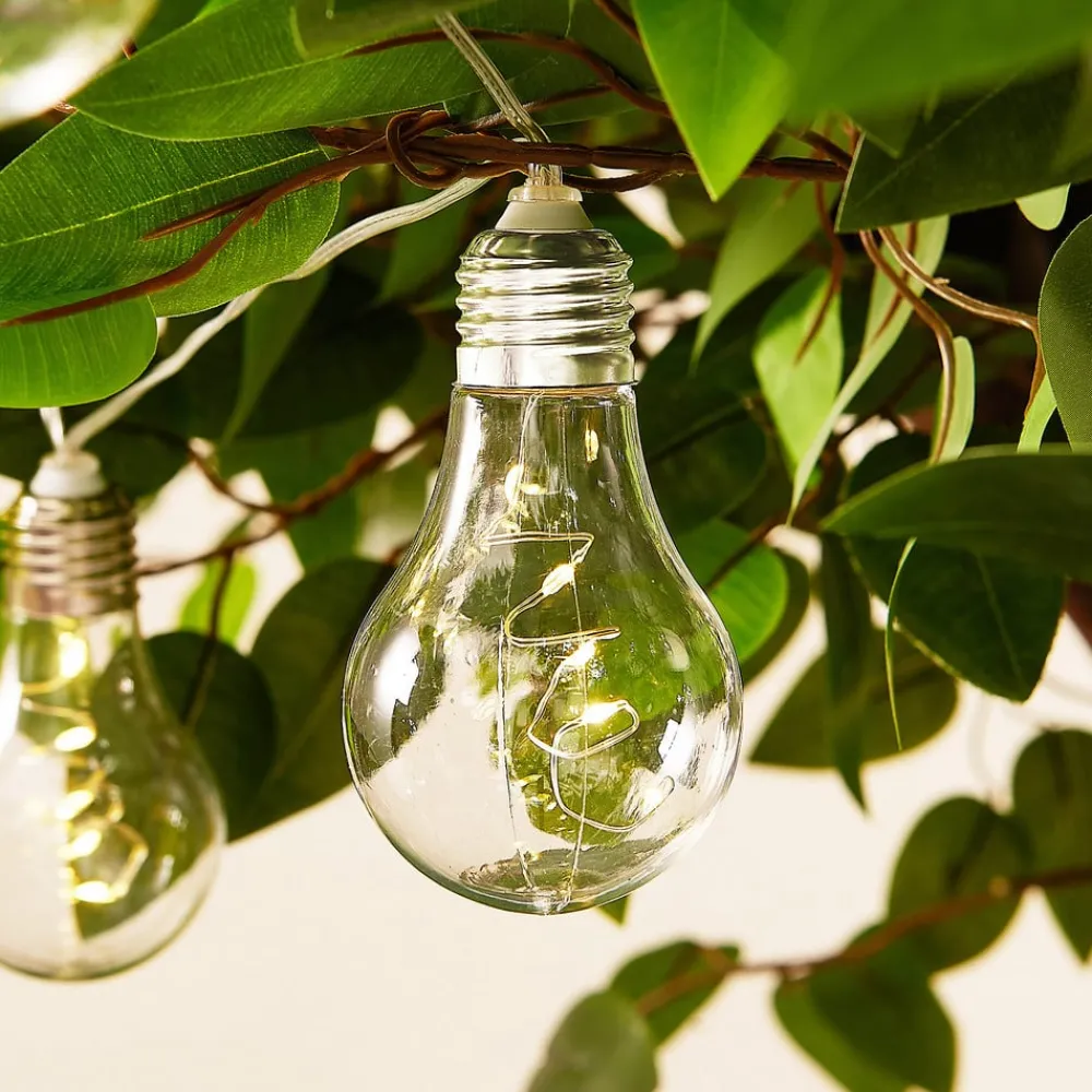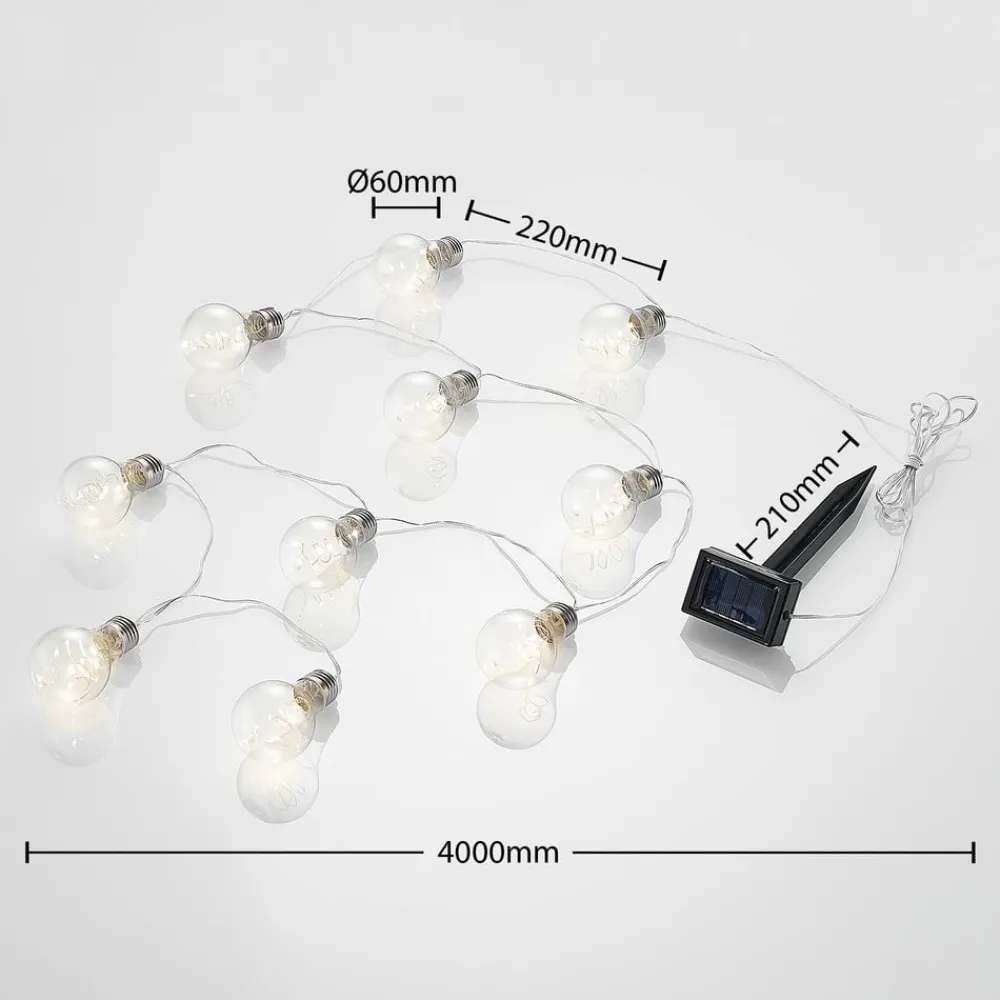 Lampini LED-lyslenker med solcellemodul Lampini LED-lyslenker er et ekstremt dekorativt belysningsobjekt som tiltrekker seg alles oppmerksomhet. Den har totalt 10 lyskilder som etterligner utseendet til en klassisk tradisjonell glødepære. Lampeskjermene og det medfølgende solcellepanelet er laget av slitesterk plast. Denne lyslenken er utstyrt med en beskyttelsesklasse på IP44 og er ideell for bruk på terrassen eller i hagen. Lampini er et attraktivt HighLight som får uteområdet til å skinne vakkert i de koselige kveldstimene!