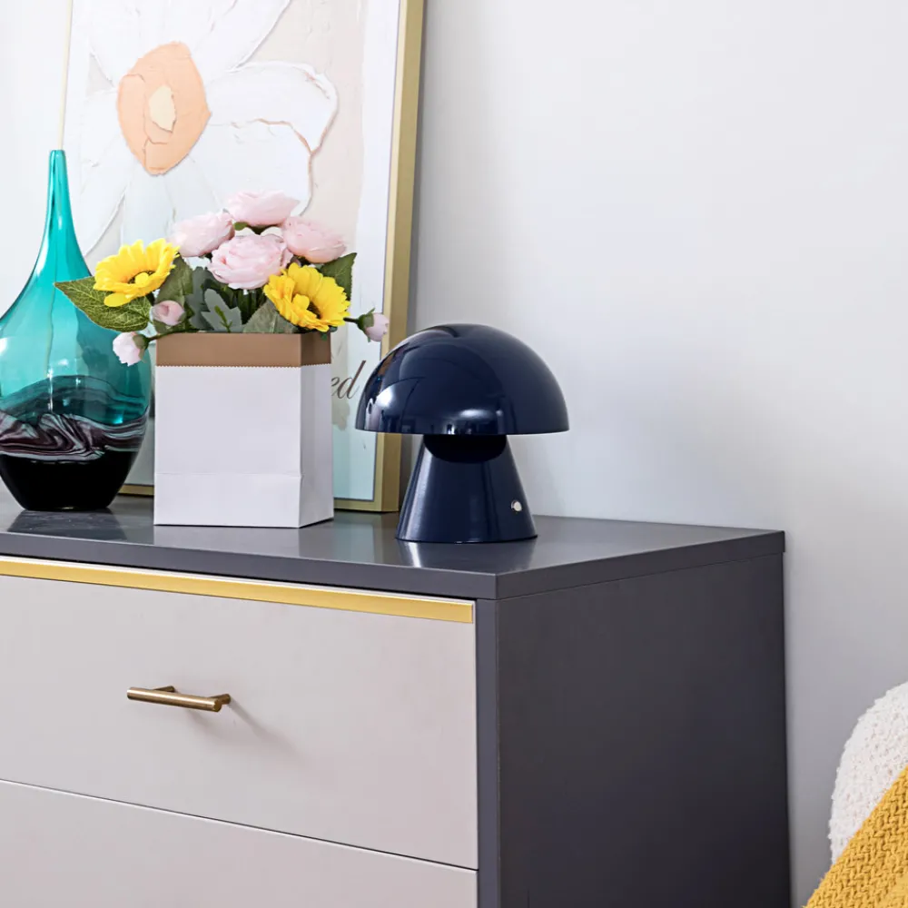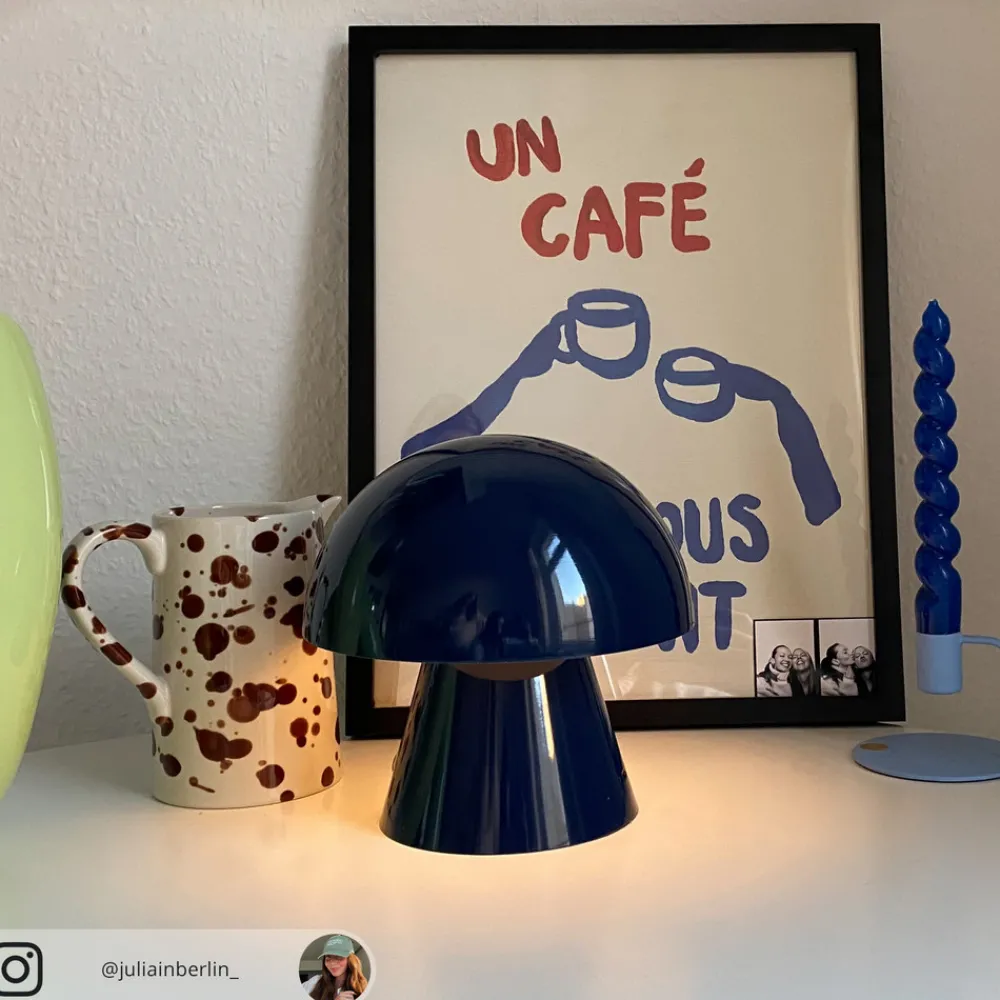 Mørkeblå LED-bordlampe Nevijo i spennende soppform – batteridrevet, dimbar Denne bordlampen er et smakfullt tilskudd til belysningskonseptet ditt. Bordlampen kan dimmes slik at du kan tilpasse lysstyrken etter dine ønsker. Det varmhvite lyset gir en koselig atmosfære i stuen din. Du kan slå bordlampen av og på intuitivt ved hjelp av en bryter. Lampens flotte design passer lett inn i ethvert rom og gir et behagelig lys som skaper en personlig atmosfære. La deg inspirere av den høye kvaliteten og den flotte designen til varemerket Lindby. Bordlampen er mørkeblå i fargen og er laget av jern. Bordlampen skaper en herlig atmosfære i ethvert rom og tilfører interiøret et koselig element. Bordlampen er perfekt for å avrunde konseptet i ethvert interiør. Denne lampen lyser opp hjemmet ditt – inkl. 3,7 V litiumbatteri