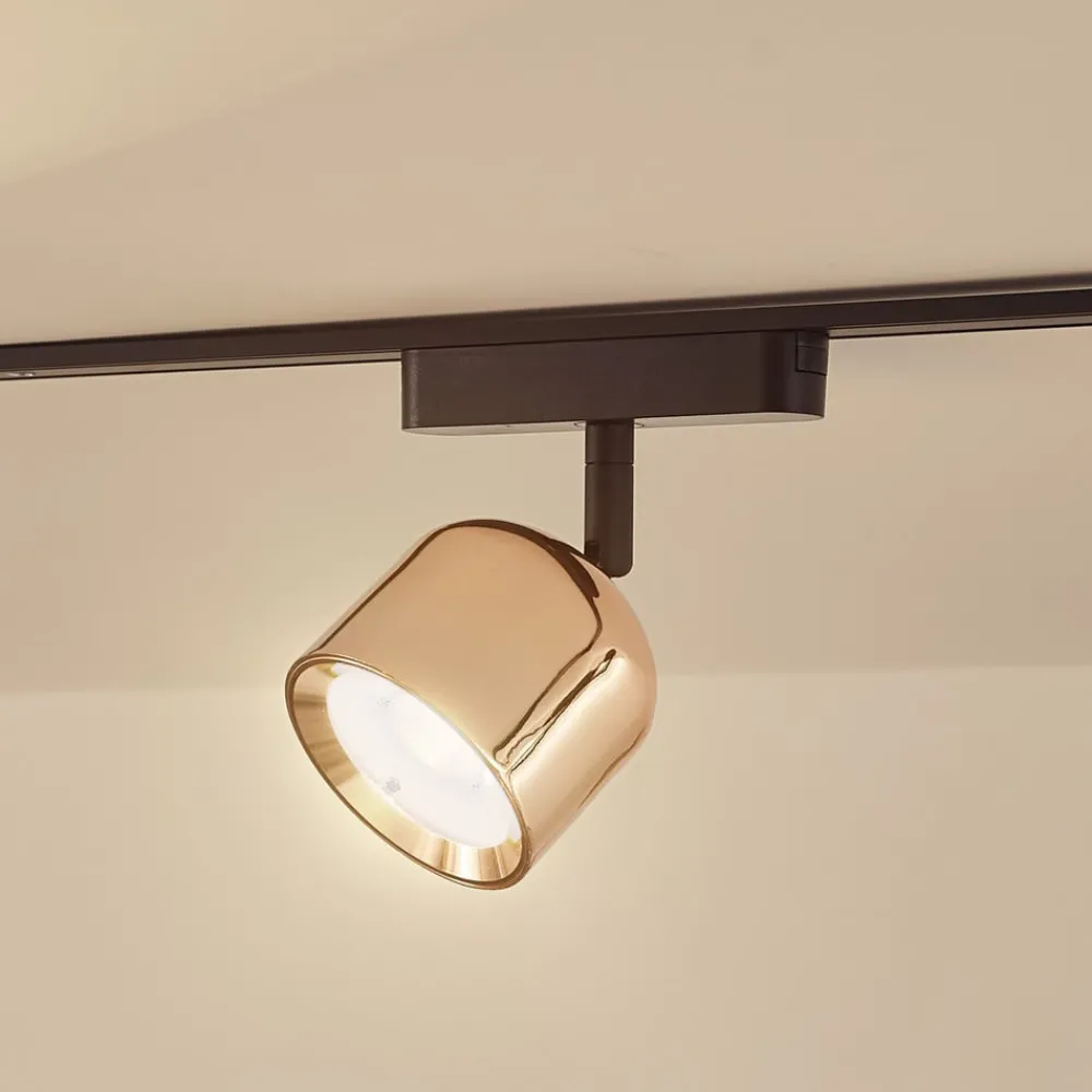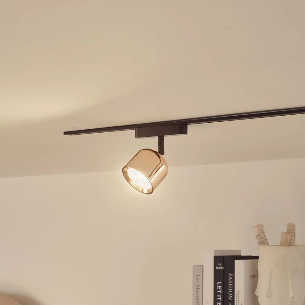 Lindby LED-spot 48 V Lumaro, rosa gull, Ø 8,2 cm, aluminium, dimbar| Skinnesystem