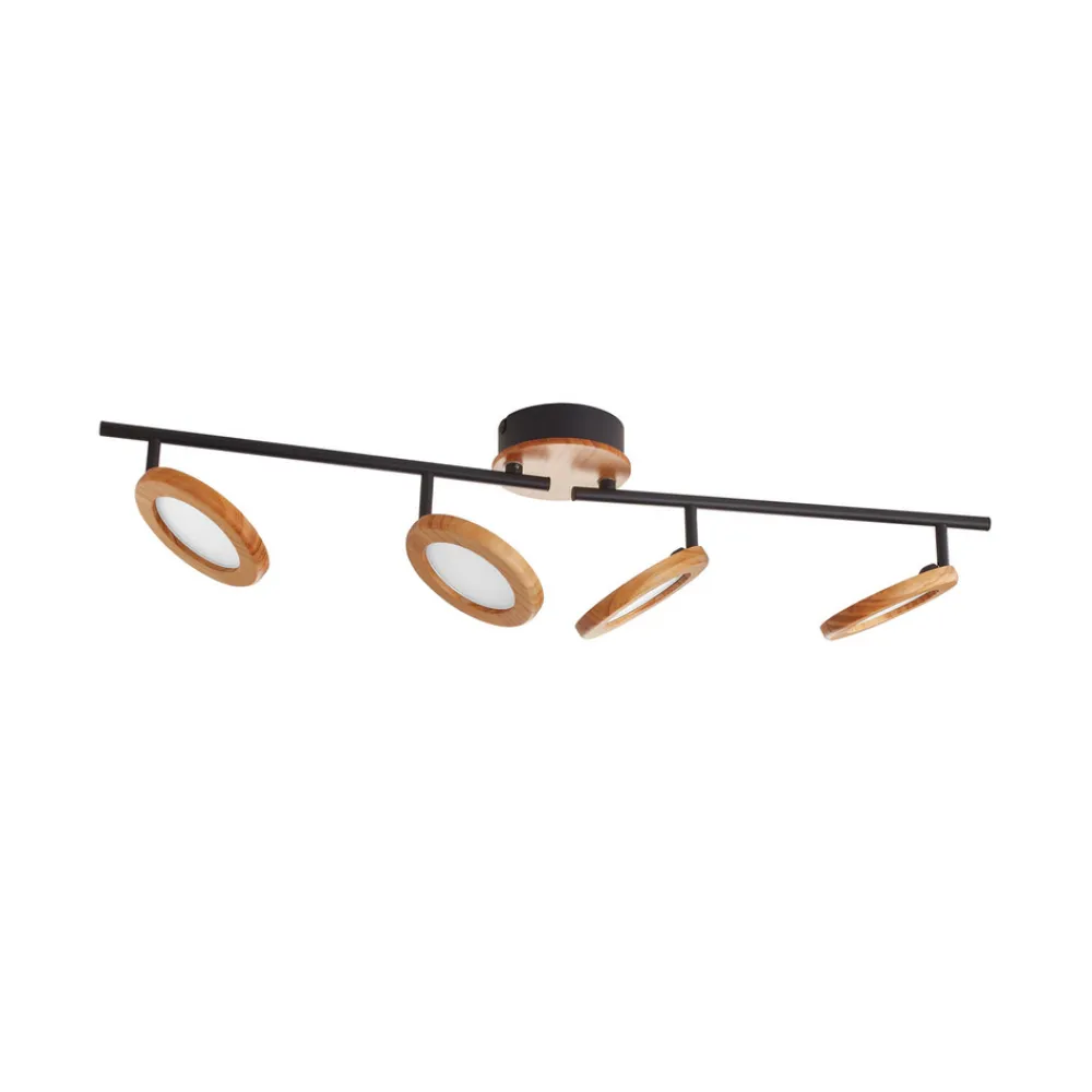 Manel 4 lyskilder LED-spot, dimbar via veggbryter Denne spotlighten gir et glamorøst preg til interiøret. Lyset kan dimmes etter humør ved hjelp av en veggbryter (10 %, 50 % og 100 %). Lampen avgir et koselig, varmhvitt lys som får deg til å føle deg vel. Den har et flott design og integreres effektivt i ethvert rom. Lampen har en fargekombinasjon av tre og svart. Alle kvalitetene og HighLights som kjennetegner varemerket Lindby, er samlet i denne lampen. Med sitt vakre design passer denne fantastiske lampen perfekt inn i hjemmet ditt og skaper en hyggelig atmosfære. Lampen er ideell for å harmonisere utseendet i ethvert oppholdsrom. Med denne lampen blir hjemmet ditt stemningsfullt opplyst.