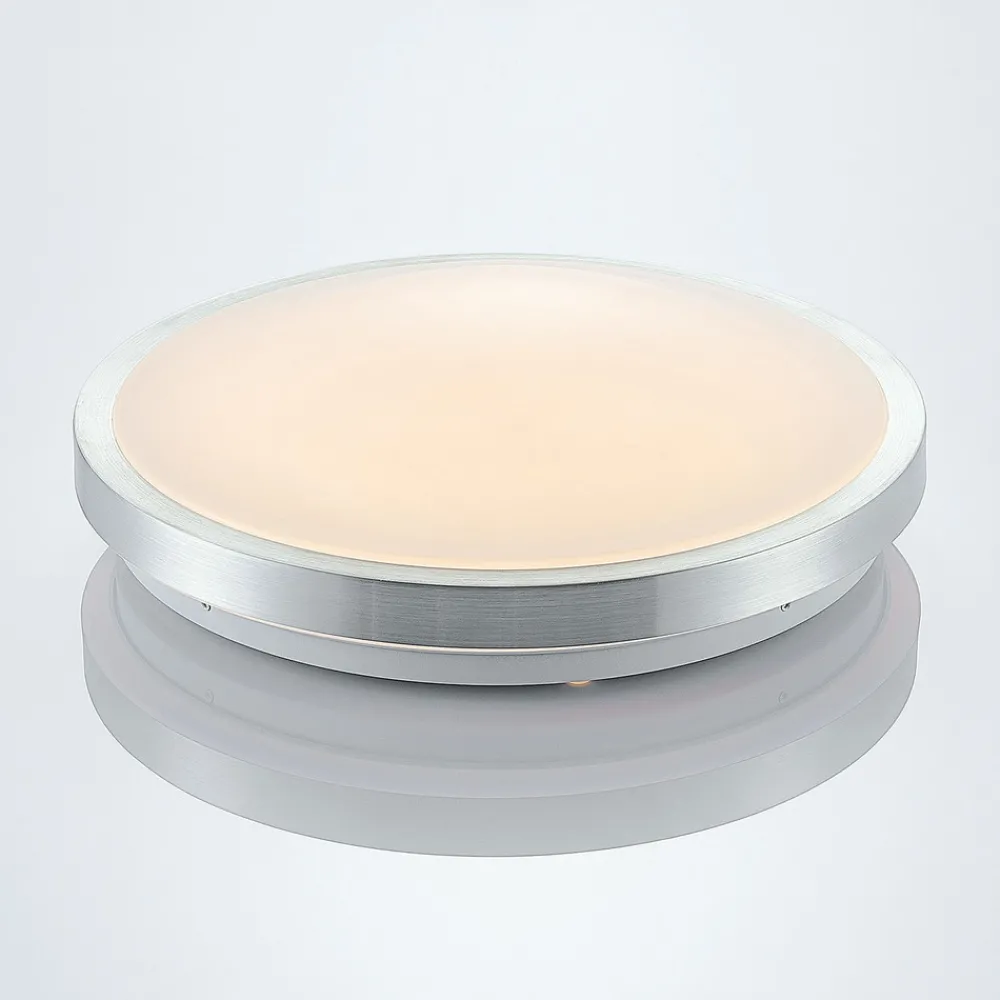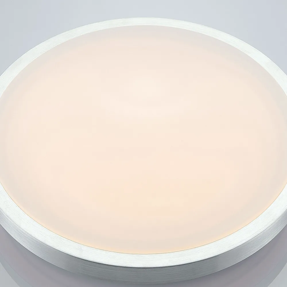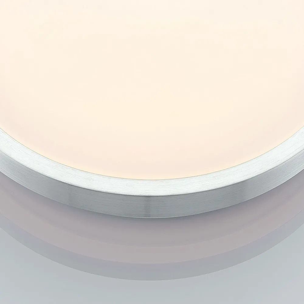Emelie rund LED-taklampe med aluminiumsramme Emelie passer først og fremst til moderne interiør, men utstråler også noe tidløst med sin runde form og metallramme av aluminium. Takket være den satengbelyste overflaten av plast sendes lyset mykt og jevnt ut i rommet. Noe av lyset slipper også ut i taket, noe som skaper en vakker glorie av lys. Alt i alt egner LED-taklampen Emelie seg svært godt som stemningsbelysning i gangen eller på kjøkkenet, og LED-teknologien lover god lysstyrke med relativt lavt energiforbruk, slik at man kan regne med god effektivitet.