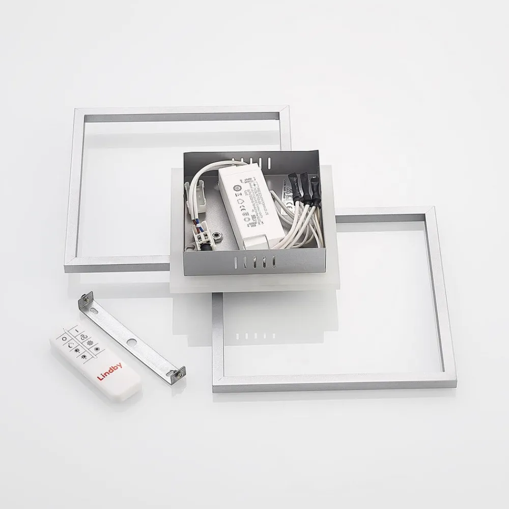 Lindby LED-taklampe Fjardo, kantet, sølv, CCT, fjernkontroll| Kontorbelysning|Led-Innendørs