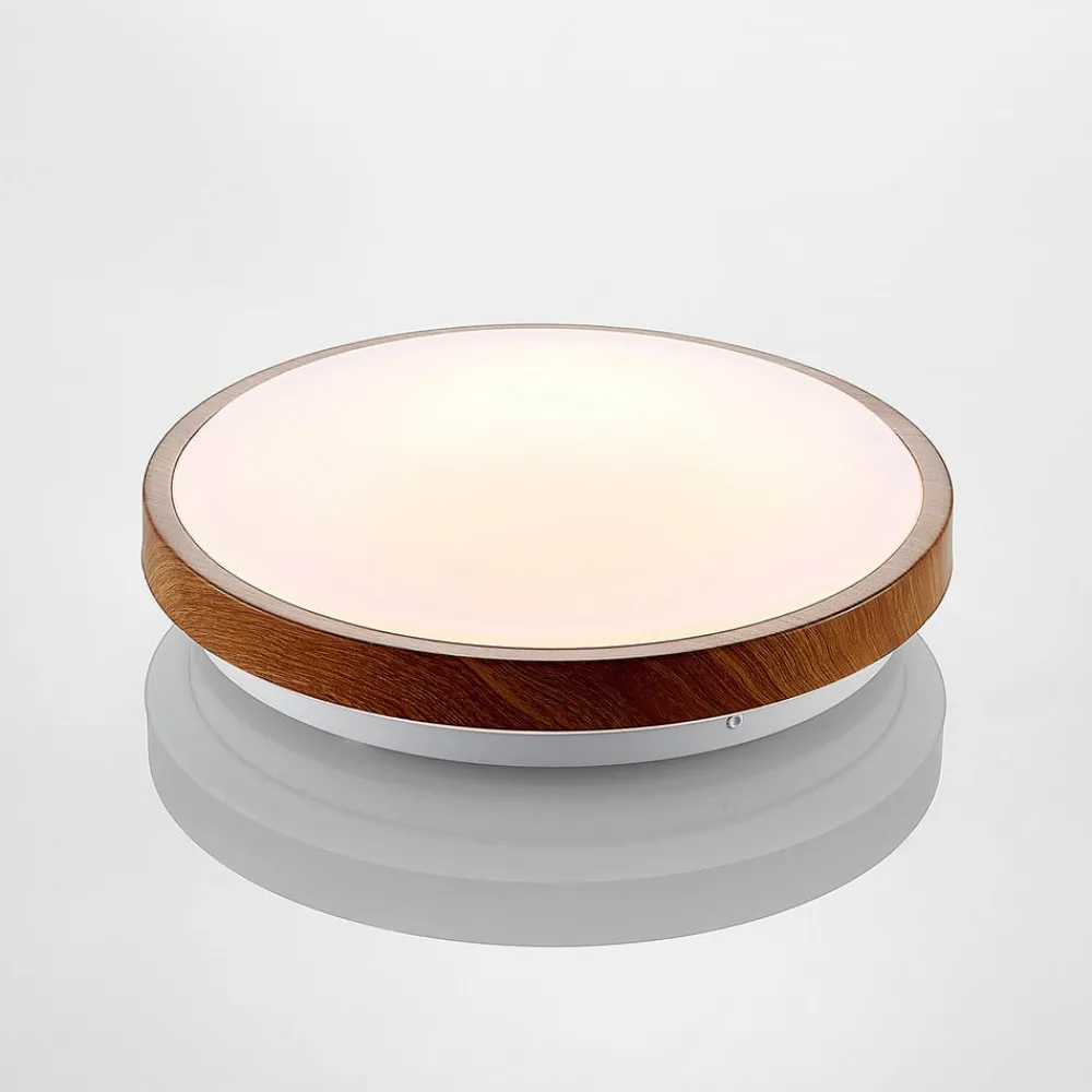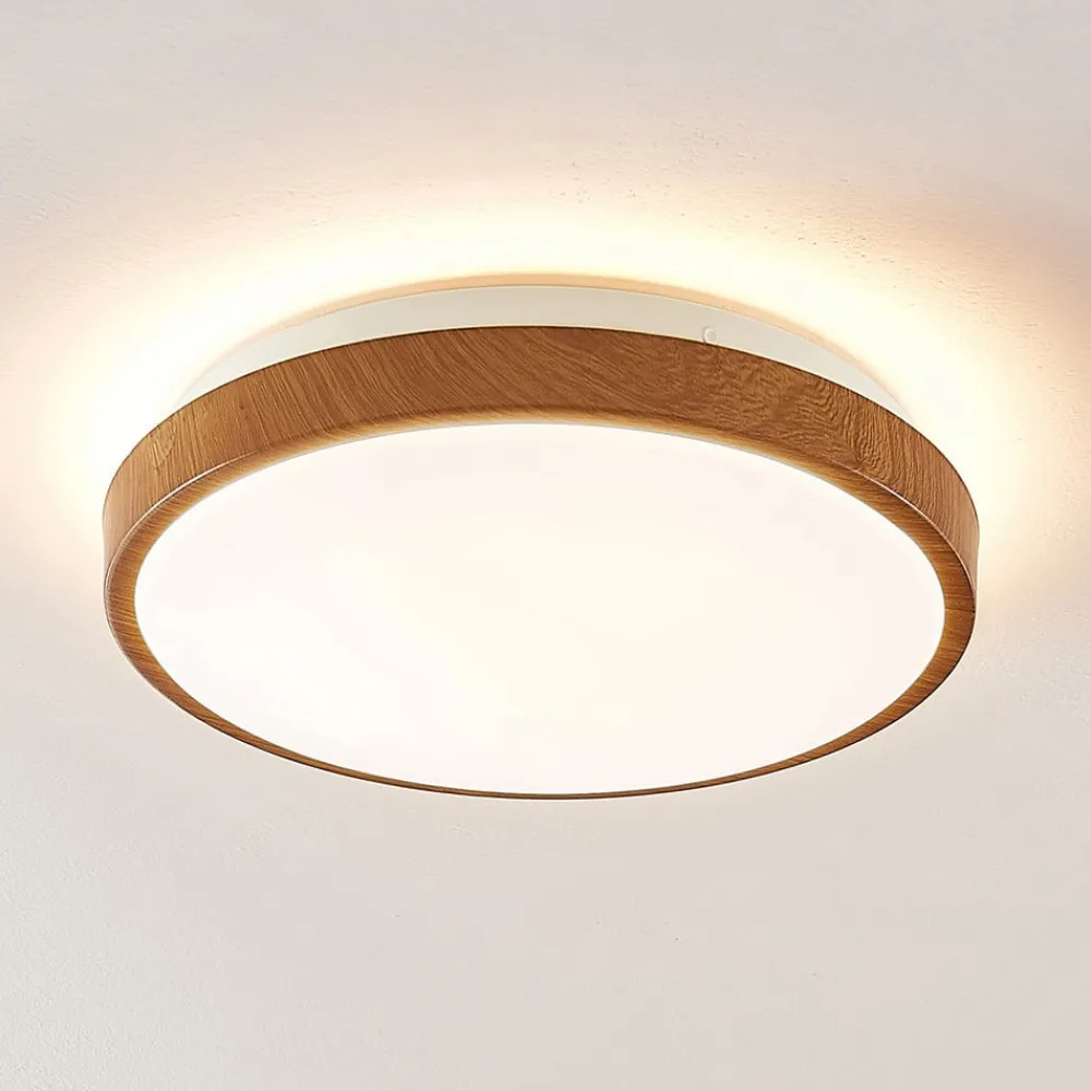 Lindby LED-taklampe Mendosa, rund, lyst tre, Ø 29cm| Design- Og Hotellbelysning|Led-Innendørs