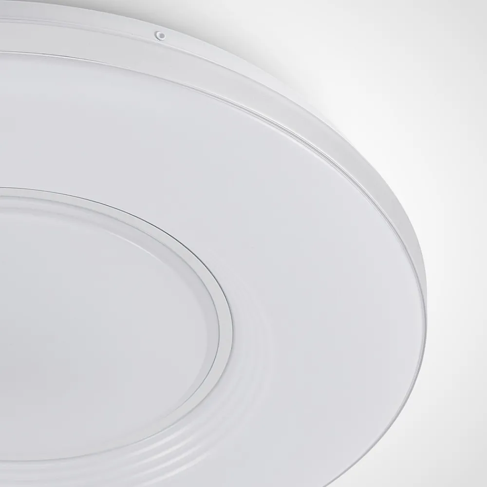 Robini LED-taklampe med fjernkontroll Robini LED-taklampe imponerer ikke bare med sin klassiske runde form og flate design, som passer perfekt inn i ulike miljøer, men også med sine mange tekniske funksjoner. Robini har en integrert timer- og nattlysfunksjon, der den lyser med maksimalt 10 % av lysstyrken. Dimmefunksjonen er spesielt praktisk, ettersom den kan brukes enten kontinuerlig eller i flere faste nivåer: 100 %, 50 % og 20 %. Fargetemperaturen kan også justeres individuelt ved hjelp av fjernkontrollen som følger med i leveransen, noe som betyr at denne lampen ikke etterlater noe å ønske.