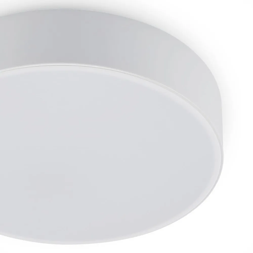 Simera LED-taklampe – en allrounder i hvitt Uansett rom og innredningsstil kan Simera LED-taklampe, som er designet helt i hvitt og i en enkel, flat form, sørge for grunnleggende belysning overalt, fra stuen til gangen til soverommet – den runde taklampen passer overalt. Inne i den flate, runde lampen er det varmhvite LED-lamper, og lysstyrken kan justeres uten ekstra installasjon ved hjelp av en eksisterende veggbryter. Lyset kan stilles inn på 100 %, 55 % og 20 % lysstyrke ved gjentatte omkoblinger, slik at lysintensiteten kan justeres fleksibelt når som helst.