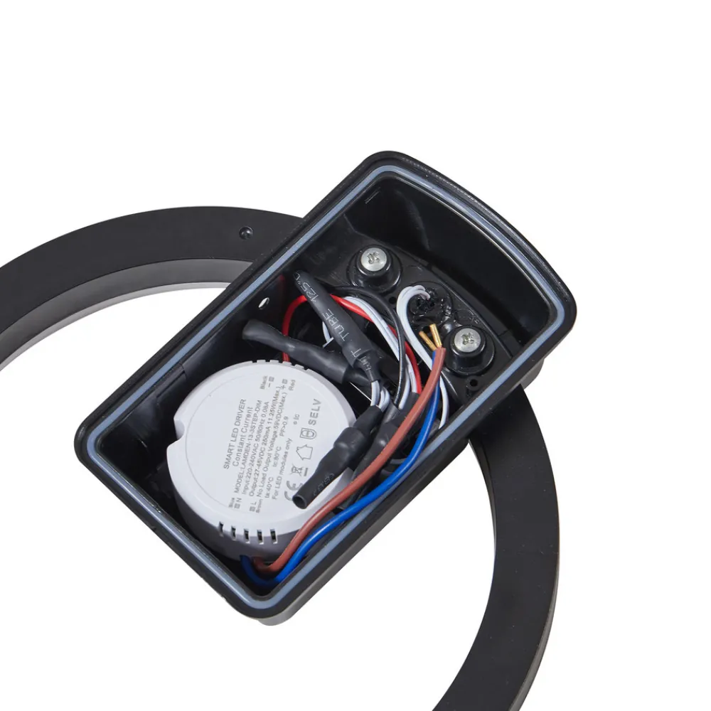 Finian LED utendørs vegglampe: rund design møter moderne chic Finian LED utendørs vegglampe fra Lindby er utstyrt med en bryter på baksiden av armaturhuset som gjør det mulig å velge en av tre ulike lysfarger før montering. Dermed kan du tilpasse fargetemperaturen direkte til de lokale forholdene og kravene, slik at du kan skape en stemningsfull lysopplevelse på terrasser og balkonger eller orientere deg i mørket. IP54-klassifiseringen garanterer at denne moderne belysningsløsningen fungerer pålitelig selv under tøffe værforhold. Med dimmefunksjonen kan lysintensiteten reguleres i tre trinn ved hjelp av den vanlige veggbryteren. Flimmerfritt og energibesparende lys sørger for behagelig og effektiv belysning i uteområder – DIP-bryter gjør det mulig å velge mellom tre lysfarger før installasjon (kan ikke endres under drift) – 3-trinns dimmefunksjon via veggbryter – Kan også installeres som vegglampe