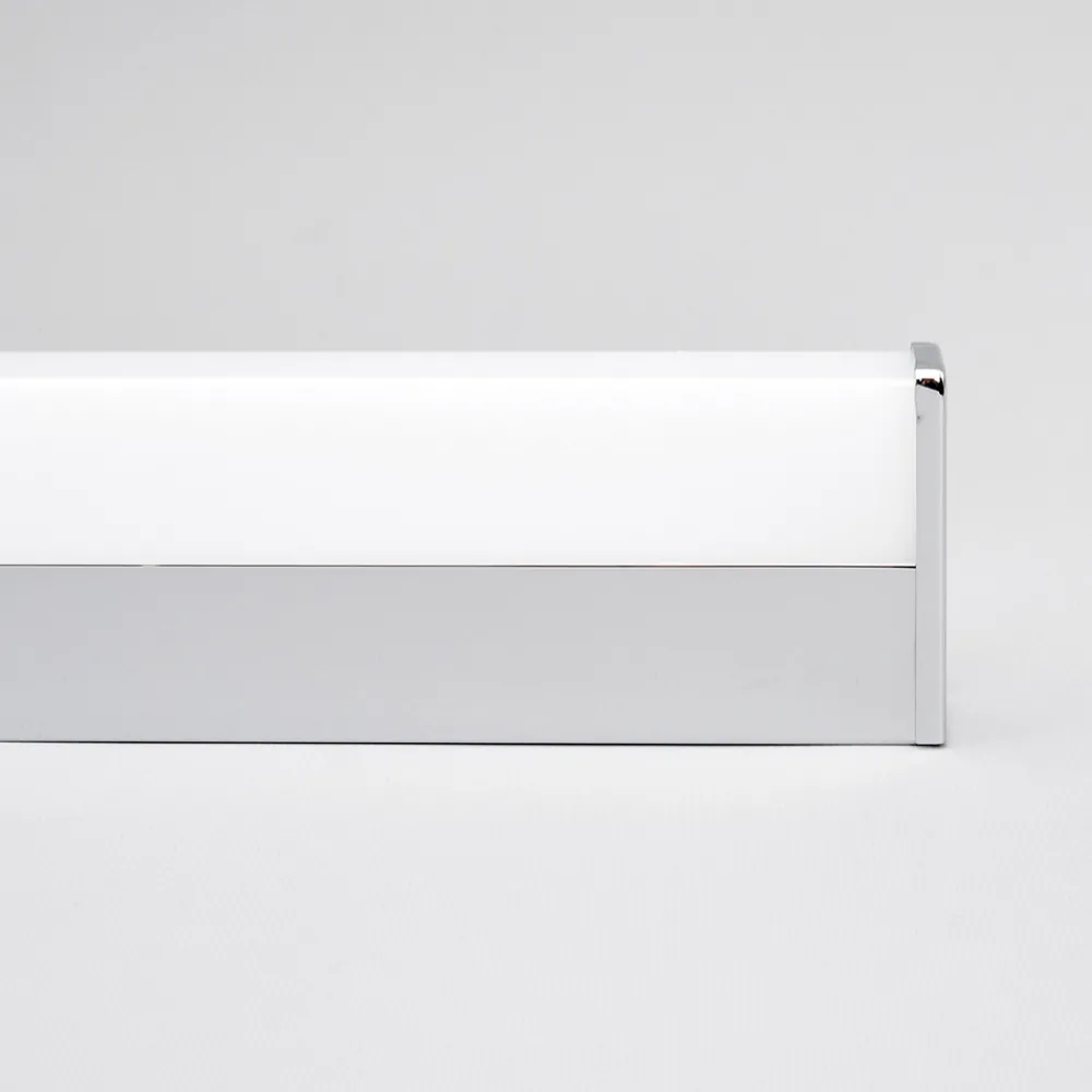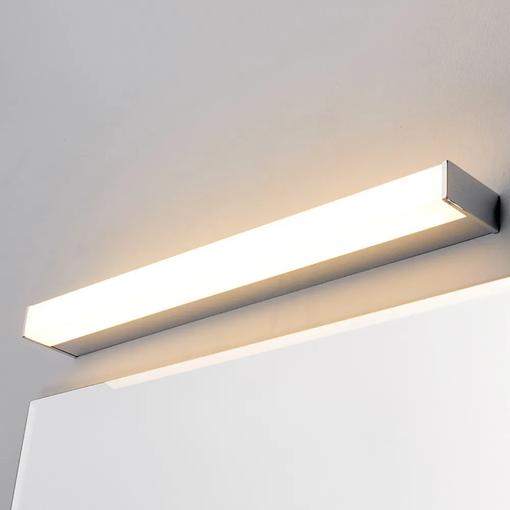 Philippa LED-vegglampe for montering på badet Philippa kan monteres som vegglampe over eller ved siden av et speil og passer til alle slags stiler, ettersom designet er svært diskret. Den opale akrylskjermen kompletteres av en enkel, skinnende kromramme, og lysfordelingen er jevn og behagelig. Den integrerte LED-teknologien kjennetegnes av høyt lysutbytte og lavt energiforbruk.