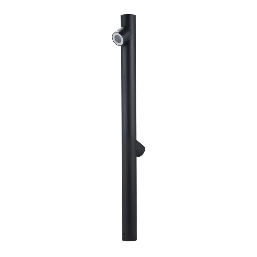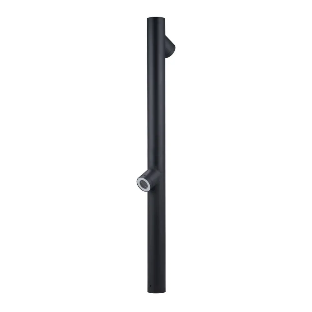Slank Lolani veilampe i svart med to lampeskjermer Med sin robuste karakter er Lolani perfekt for utendørs bruk. Veilampen er laget av robust aluminium og har en svart farge. Den har også kapslingsgrad IP54, noe som betyr at den er beskyttet mot støv og vannsprut. På den slanke lampekroppen er det festet to lampeskjermer som kan utstyres med passende pærer og er rettet nedover. Skjermene er plassert slik at de gir blendingsfri belysning. Lolani veilampe kan plasseres ved siden av en hagesti og kombineres med andre lamper i serien for å skape et harmonisk helhetsinntrykk og sørge for nødvendig belysning i mørket.