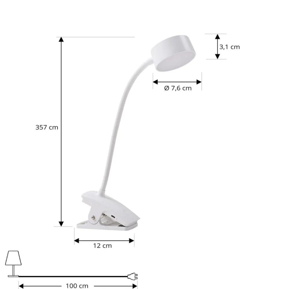 Lindby oppladbar klemmelampe Maori, hvit, metall, CCT, dimbar.| Kontorbelysning|Led-Innendørs