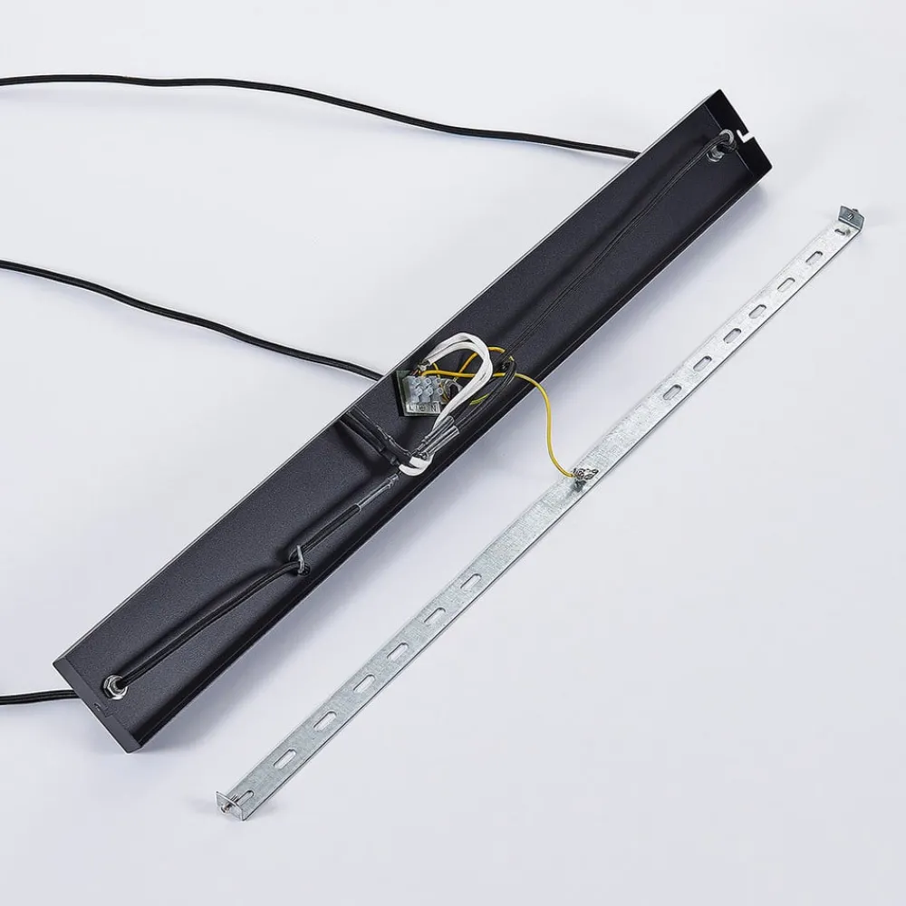 - Takfeste – lengde 80 cm, bredde 8 cm, høyde 2,5 cm; skjerm – Ø 25 cm, høyde 17,2 cm