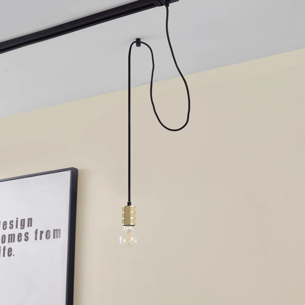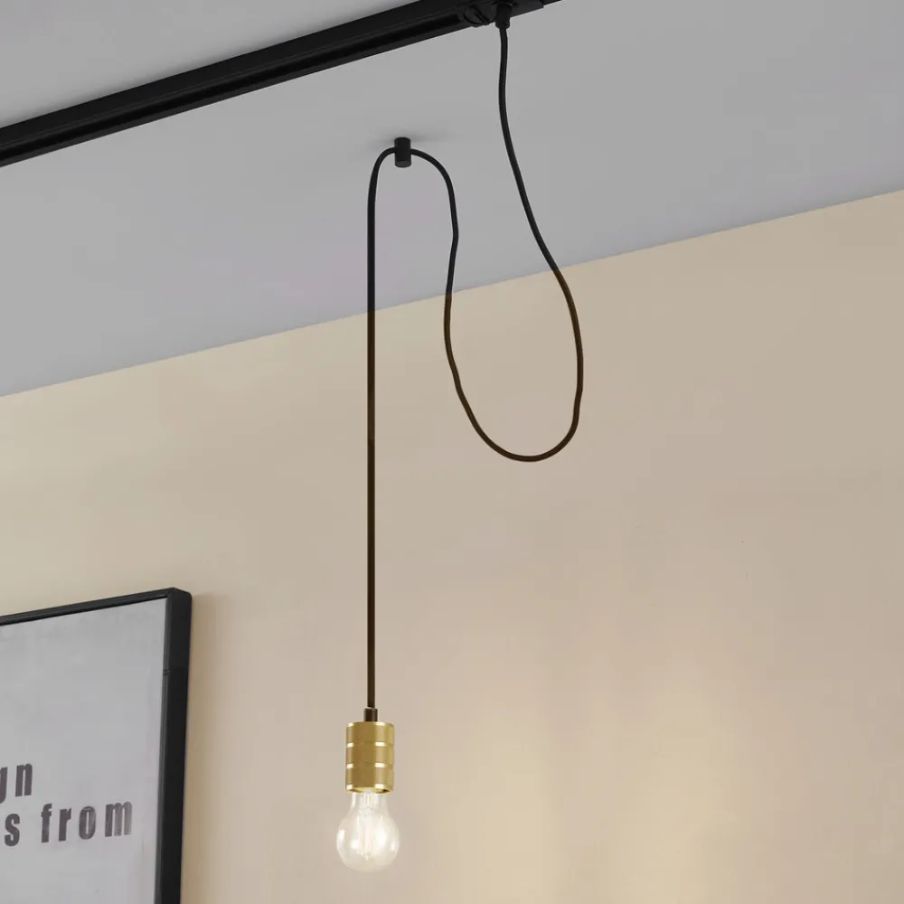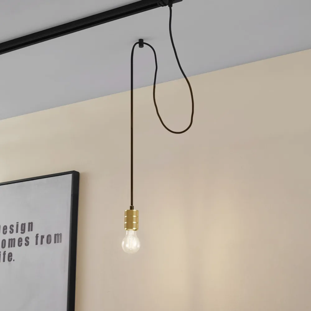 Linaro pendellampe i gullfarget aluminium Linaro pendellampe i gull kombinerer moderne design med en eleganse som gir et spesielt preg til enhver spisestue eller stue. Skinnesystemet muliggjør fleksibel belysning som bader rommet i en stemningsfull atmosfære. Selv om det ikke følger med en dimmer, kan lysstyrken tilpasses ved å installere en ekstern dimmer (vær oppmerksom på at den eksterne dimmeren må kjøpes separat) – pendellampen må kombineres med andre komponenter i Linaro skinnesystem for å fungere Vær oppmerksom på at Linaro skinnesystem kun er kompatibelt med tilbehør fra Linaro-serien. For å unngå forveksling med andre systemer, må du kun kombinere tilbehør og skinnesystemer fra serien med samme navn.