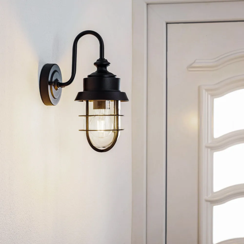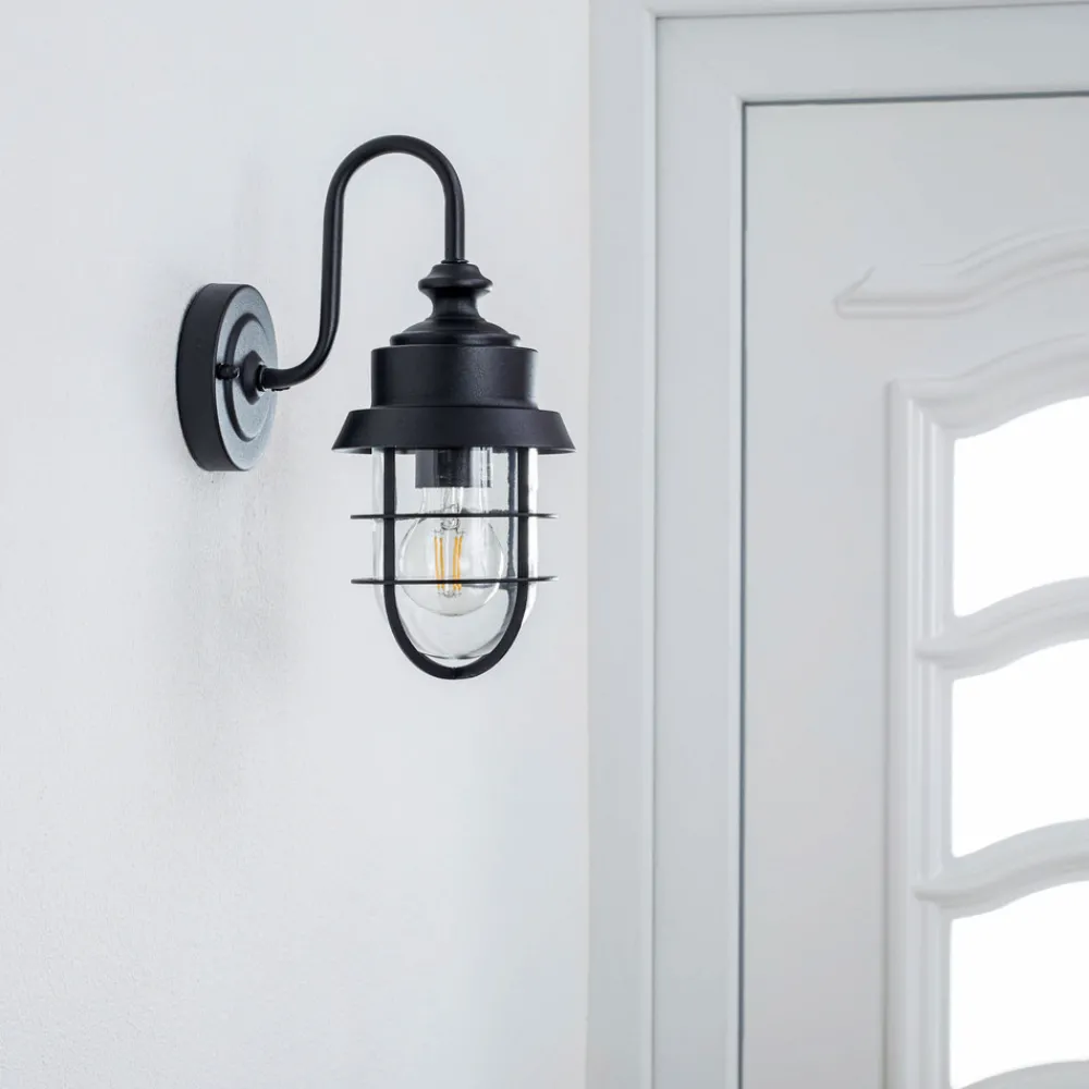 Skjermen til Rellidia utendørs vegglampe har en nostalgisk effekt og er et vakkert blikkfang for uteområder. Den sorte, buede rammen kompletteres med en beskyttende innsats laget av klart glass, slik at lampen kan brukes utendørs. Lamper med glødetrådslook, som er basert på den klassiske glødelampen, fungerer spesielt godt sammen med det ganske antikke designet. Risten som vikler seg rundt glasset er veldig passende og passer godt inn i den generelle utformingen av vegglampen utendørs.