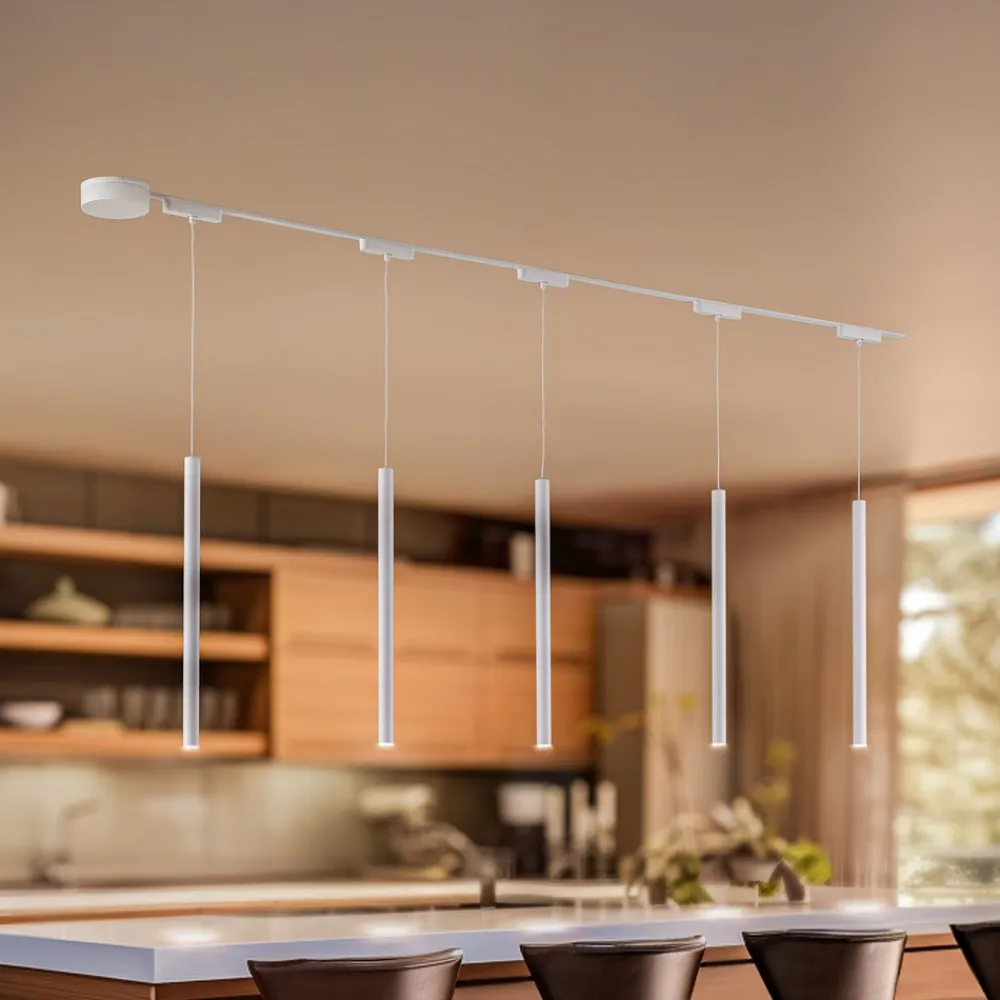 Hvitt 1-faset skinnesystem Lumaro med fem pendellamper – inkl. dimmer og CCT-funksjon