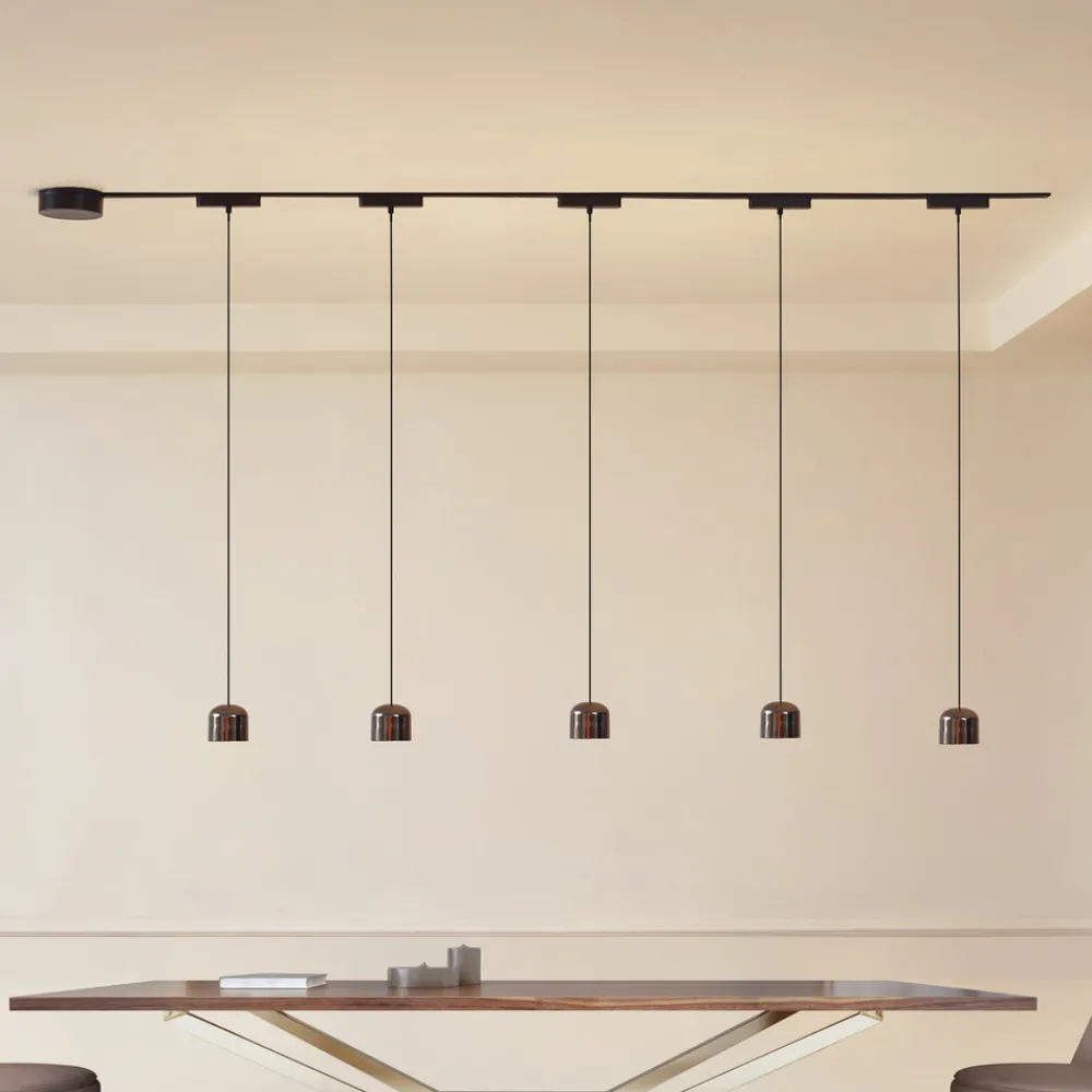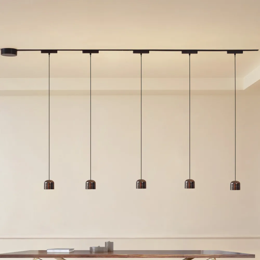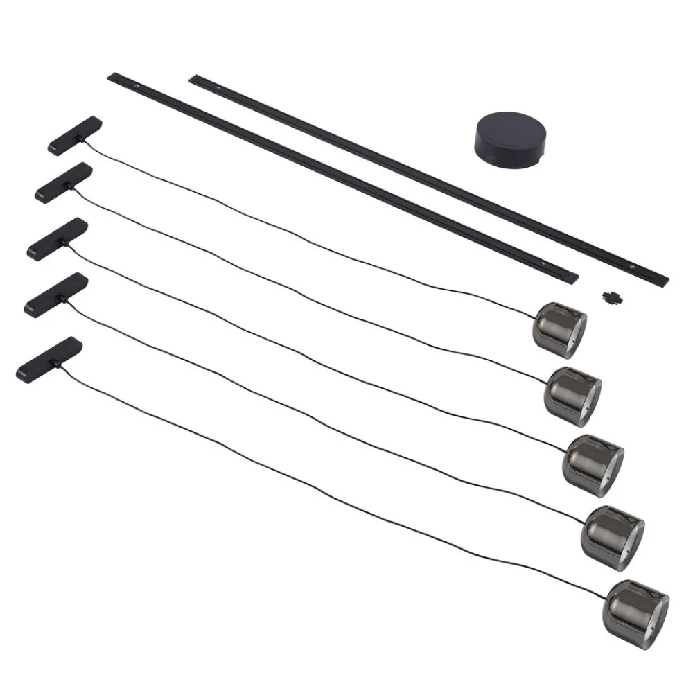 5 lyskilder, 1-faset skinnesystem Lumaro med pendellamper – en praktisk følgesvenn for innendørs bruk med dimbar og CCT-funksjon