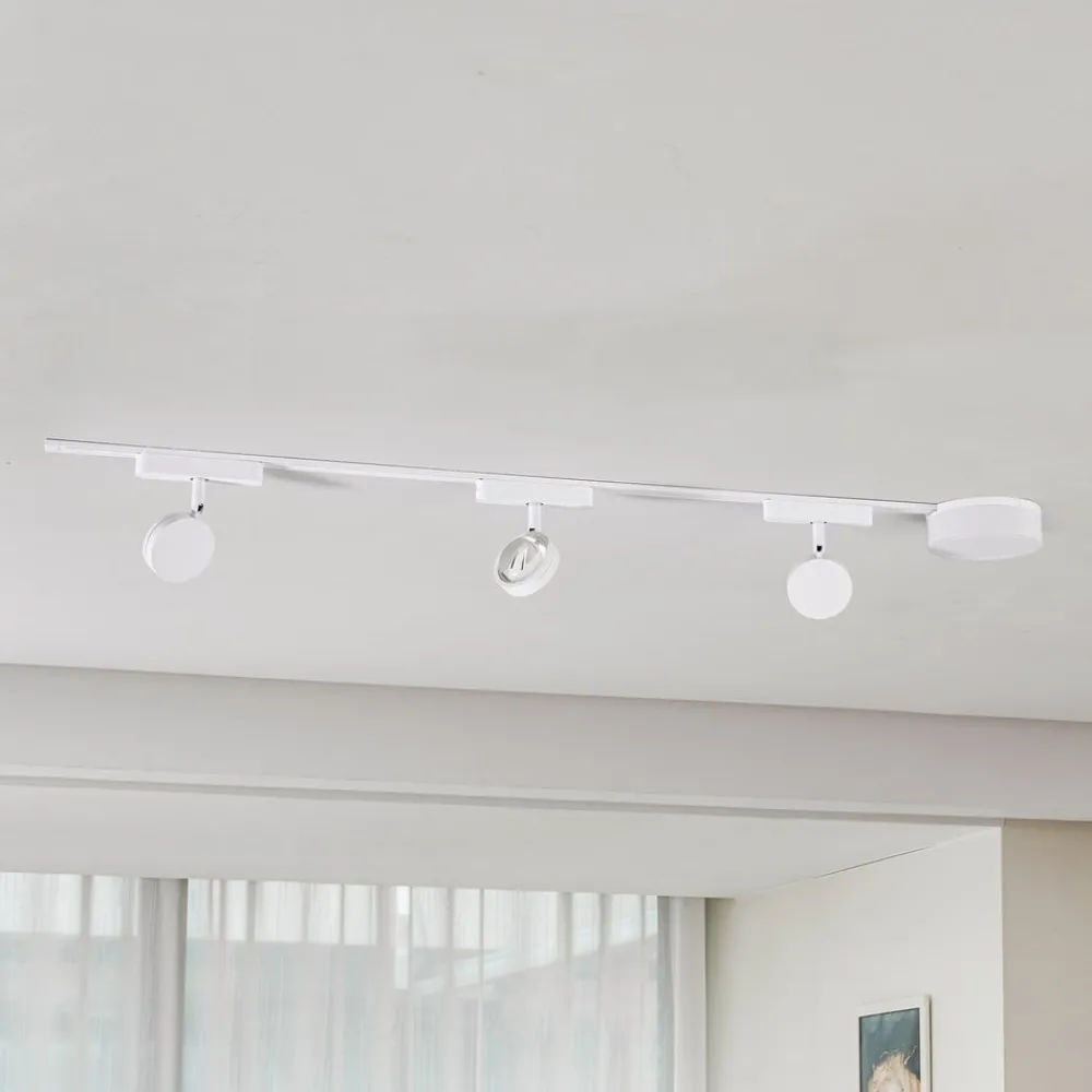 Hvitt 1-faset skinnesystem Lumaro med LED-spots og fjernkontroll
