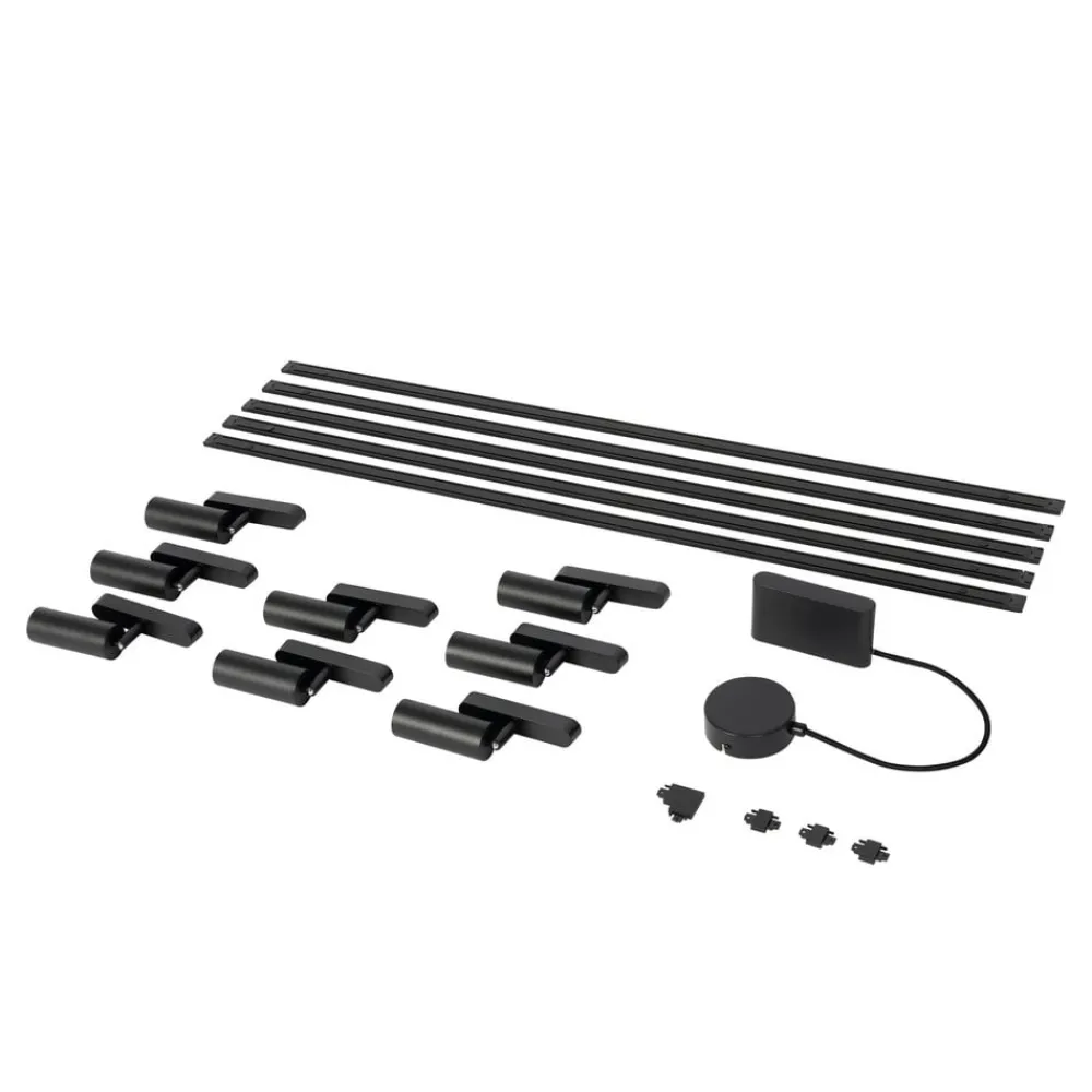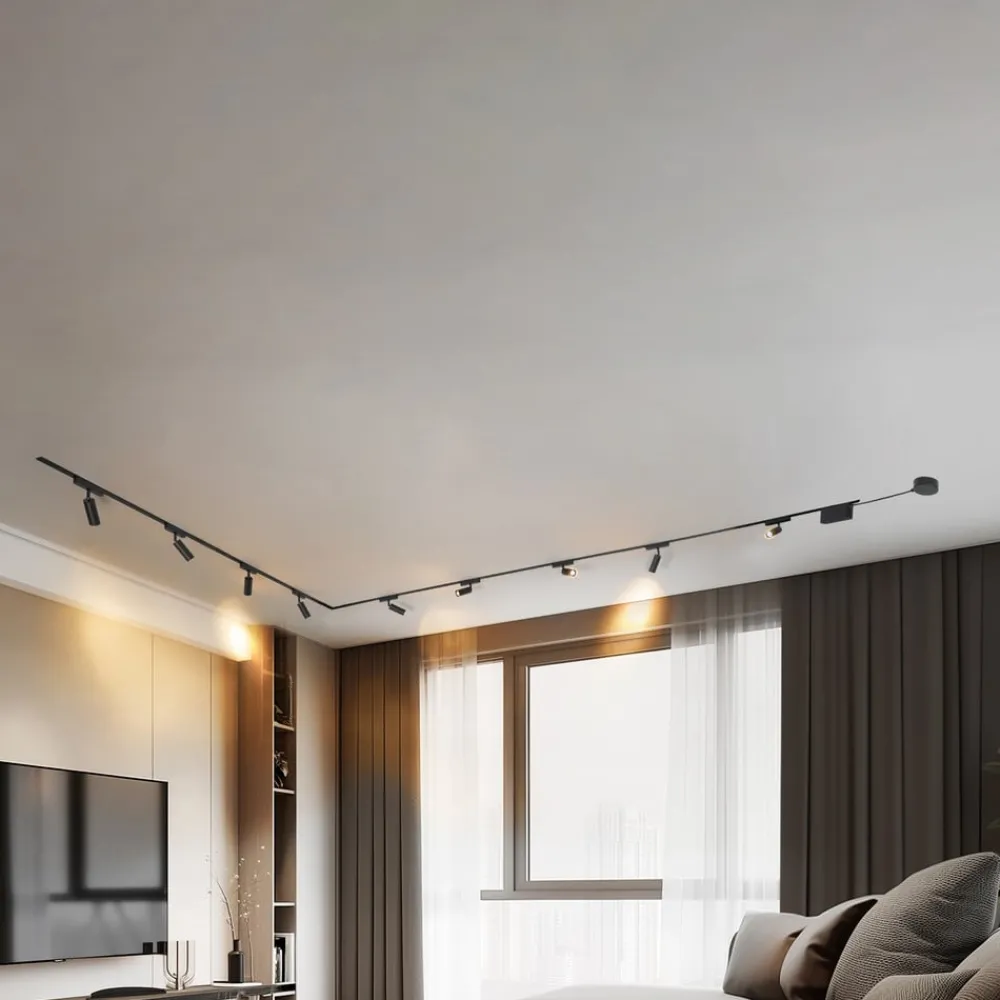 Lumaro-skinnebelysningssystemet er holdt i elegant svart og består av en kombinasjon av jern, aluminium og plast. Det flate, stilrene designet passer perfekt inn i moderne boliger. Installasjonen er rask og enkel, og takket være lavspenningssystemet er det energieffektivt, bærekraftig og holdbart.