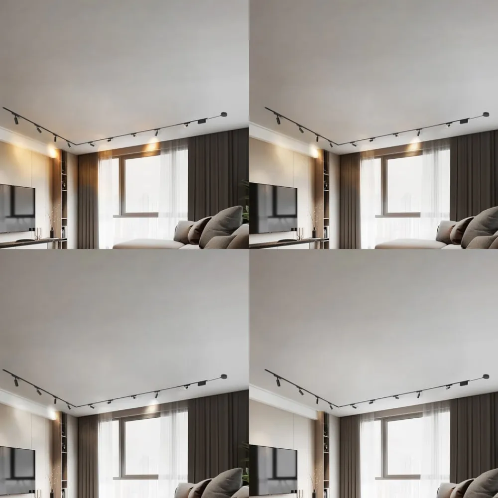 LED-spotene er dimbare og har en kontrollerbar lysfarge (CCT), slik at du til enhver tid kan stille inn ønsket lysstyrke eller lysfarge (fra varmhvit til dagslys). Begge funksjonene kan enkelt styres med den medfølgende fjernkontrollen. Lumaro-skinnebelysningssystemet gir stor fleksibilitet, da armaturene kan plasseres hvor som helst langs skinnene. I tillegg kan systemet utvides med ekstra skinner og lyselementer, noe som gir utallige designmuligheter og maksimal fleksibilitet.