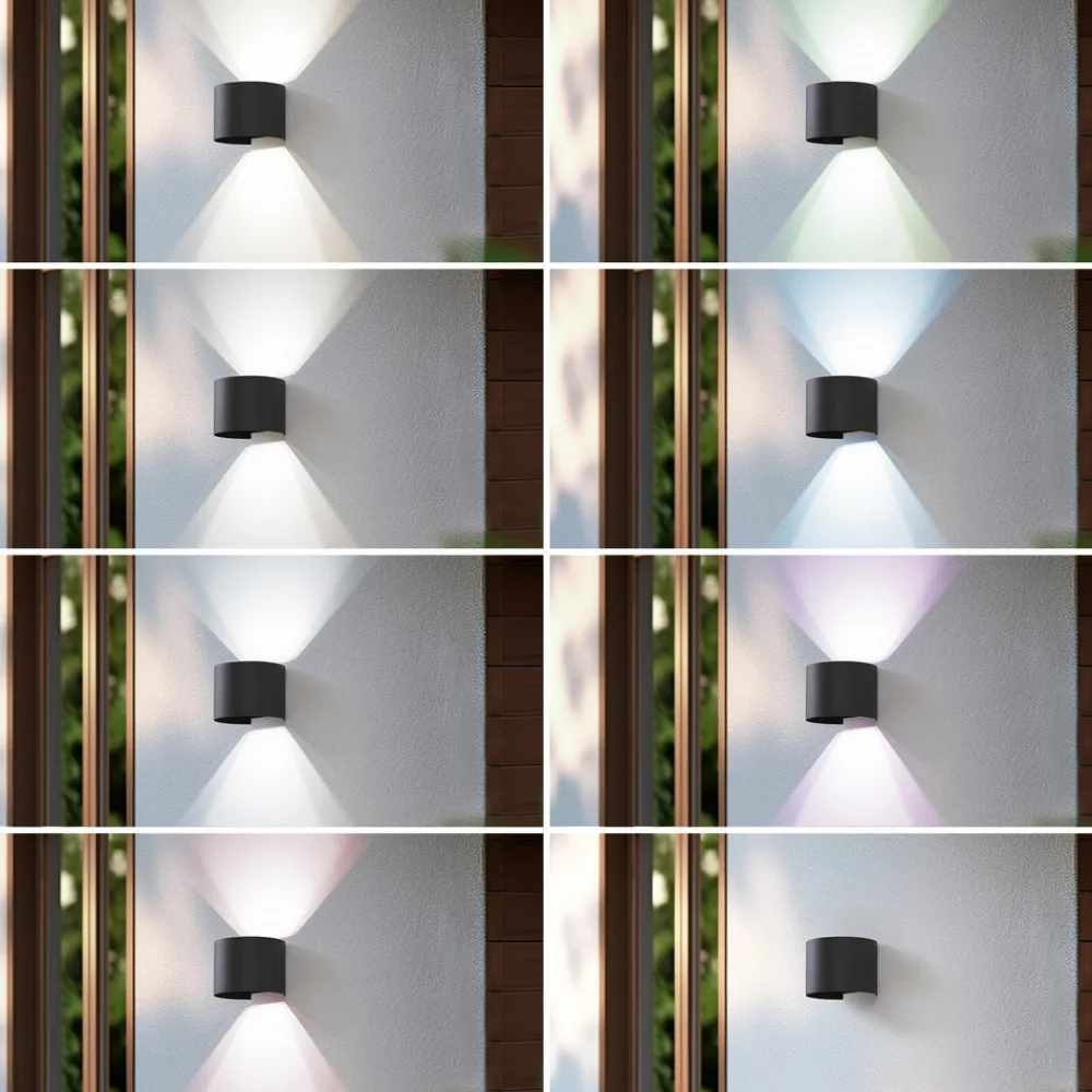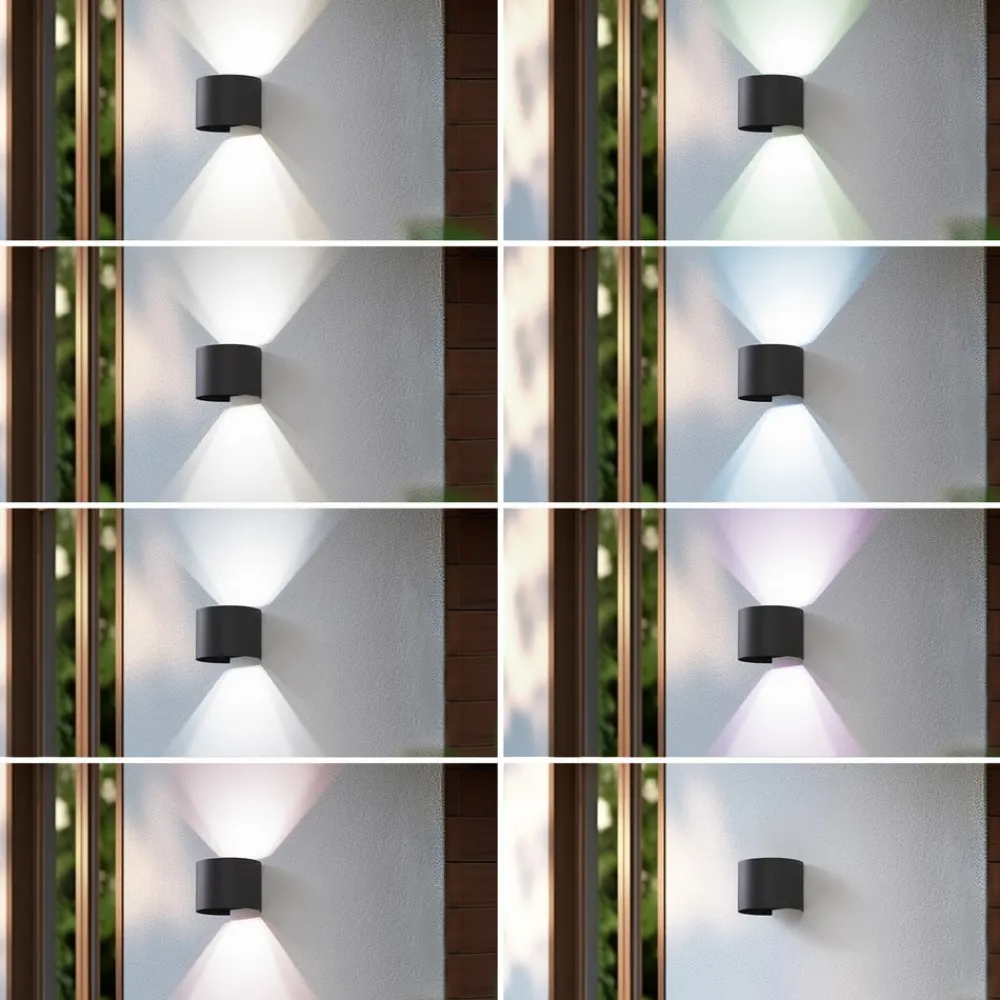 Smart LED-vegglampe Dara i rund form med CCT- og RGB-funksjon Dara LED-vegglampe er det perfekte valget for alle som ønsker å utstyre uteområdet sitt med fleksibelt styrbart lys. Med CCT- og RGB-funksjonen kan lysfargen justeres individuelt fra varmhvitt til dagslyshvitt, og det er også mulig å velge mellom en rekke sterke farger. Det er også mulig å regulere lysstyrken. Dara kan enkelt styres via den gratis Tuya-appen på en smarttelefon eller et nettbrett. LED-vegglampen er laget av plast og aluminium og har kapslingsklasse IP54, noe som betyr at den kan brukes utendørs uten problemer. Den moderne designen og den runde formen gjør at lampen passer perfekt inn i ethvert uteområde og er ideell for balkonger og uteplasser.