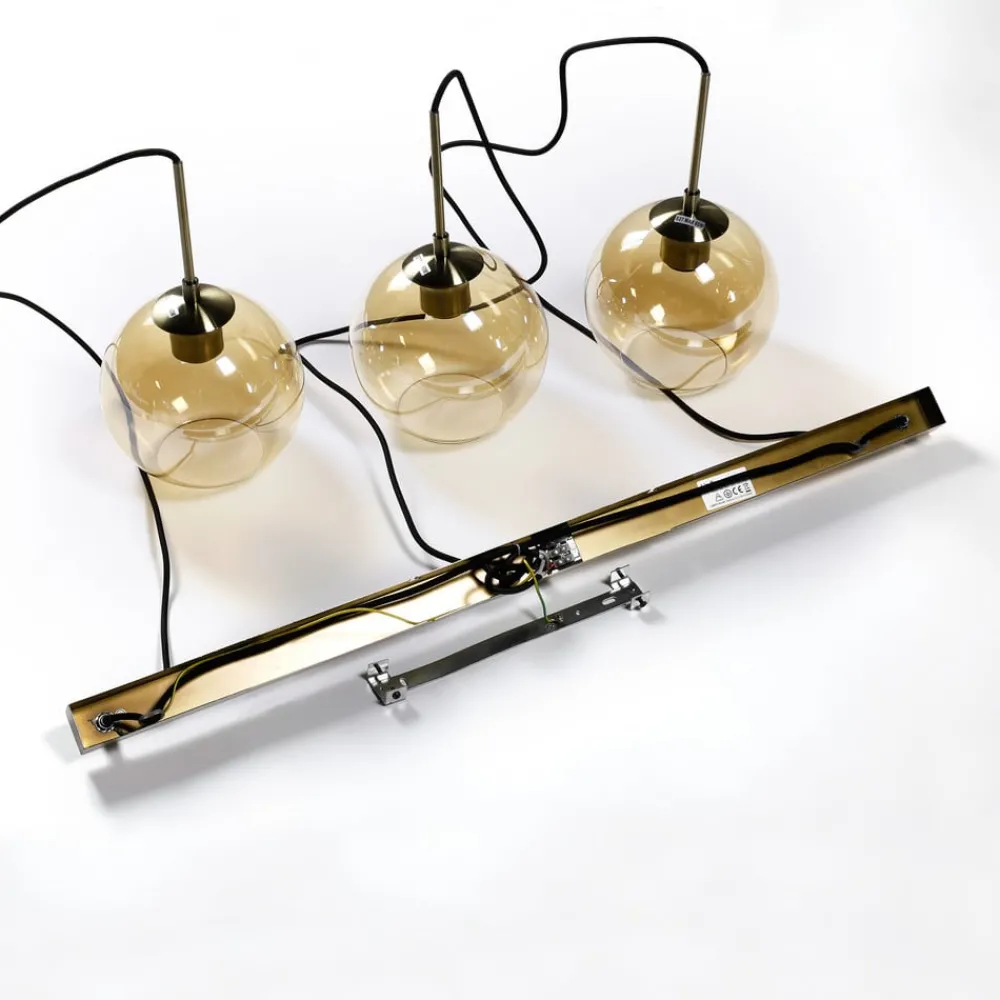 Sofian hengelampe til spisebordet med ravfargede kuleformede glasskjermer, 3 lyskilder Sofian imponerer med et svært koselig lysmønster og et moderne helhetsinntrykk. Pendellampen er utstyrt med tre lampeskjermer som alle ser like ut og har en ravfarget overflate som skinner vakkert og bidrar sterkt til en spesielt hyggelig atmosfære i rommet. Takket være den ravfargede overflaten trenger lyset inn i omgivelsene på en svært koselig og varm måte. Fatningene på E27 kan utstyres med lamper etter eget valg, og du kan også gjerne bruke lamper som har integrert moderne LED-pærer. Nå finnes det også spesielt stilige glødepærer og rustikke lamper som tydelig minner om klassiske tradisjonelle glødepærer.