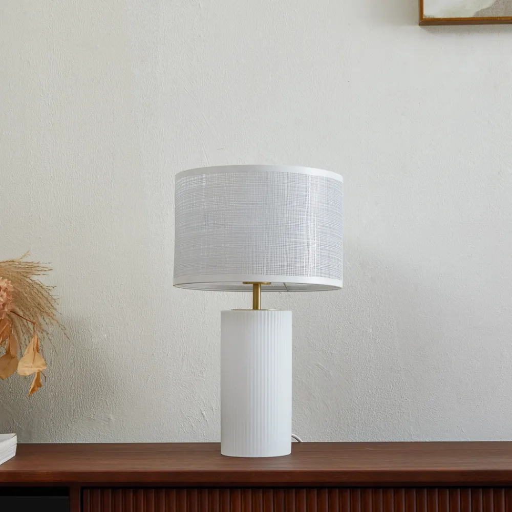 Lindby Sorscha bordlampe, hvit, jern, Ø 26 cm