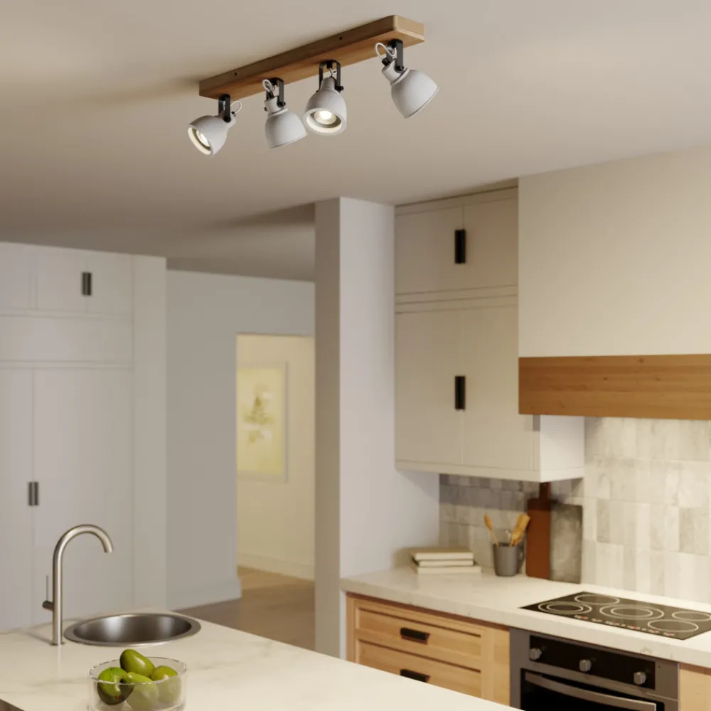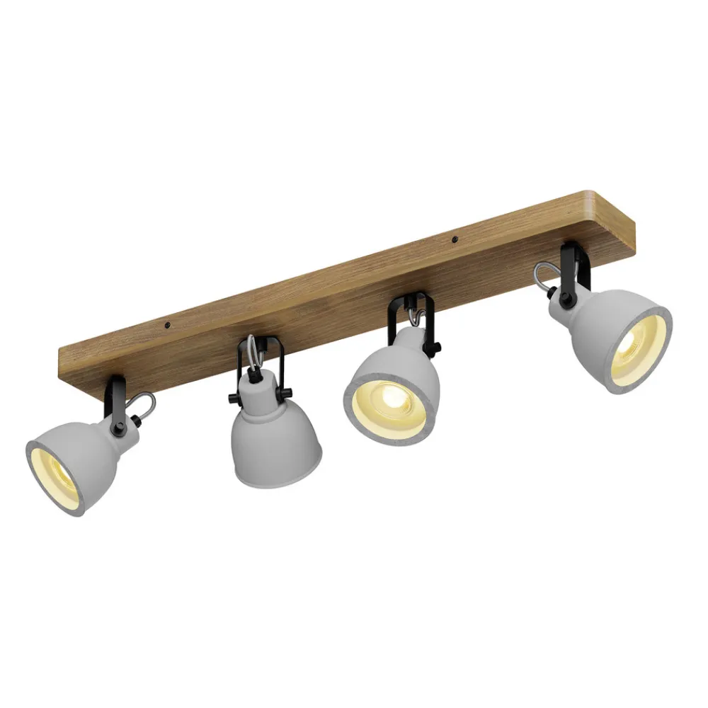 Lindby Spot Mitis, 70 cm, 4 lyskilder, grå, tre, betong, GU10 New