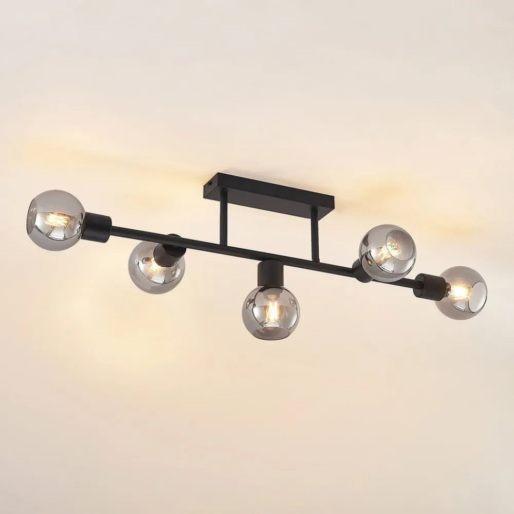 Lindby taklampe Biscala, 5 lyskilder, svart/røyk, E14
