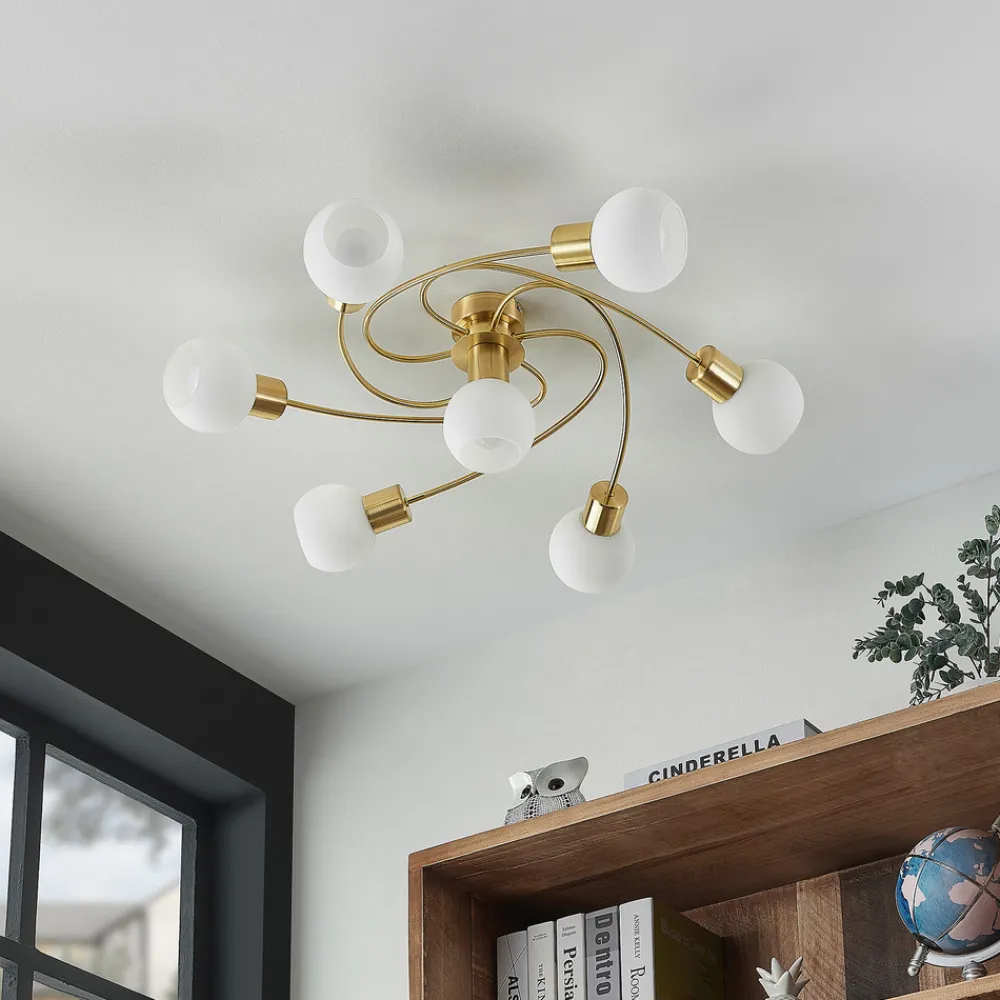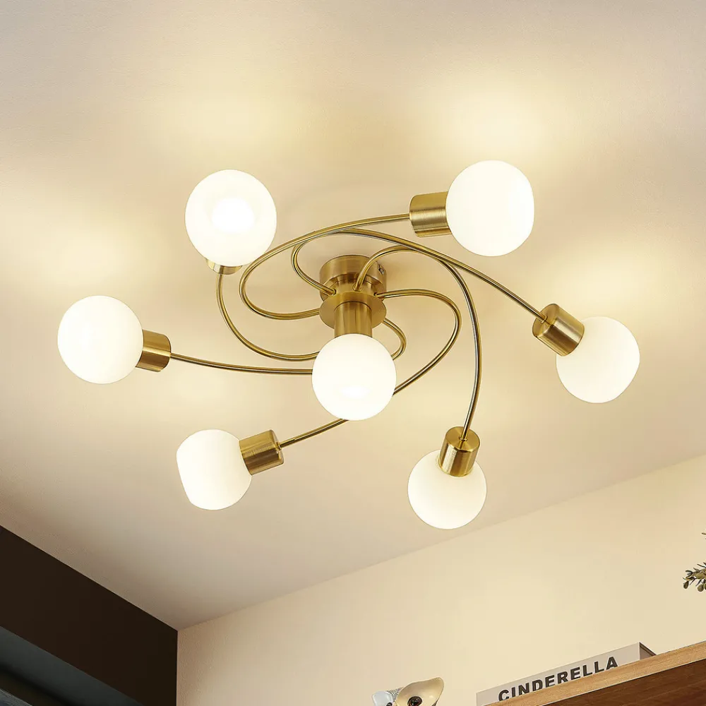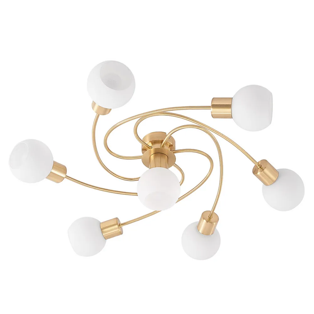 Lindby taklampe Ciala, 7 lyskilder, messingfarget, glass Best