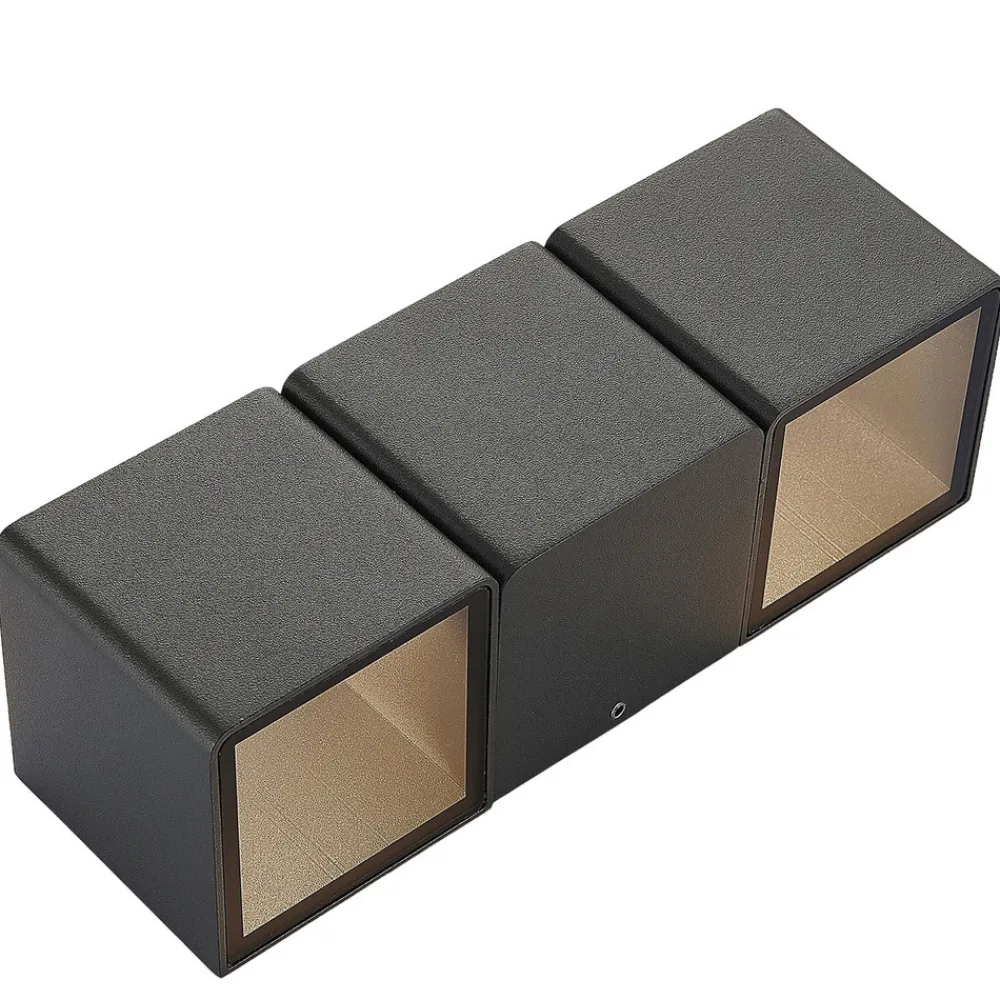 Utevegglyset har kapslingsgrad IP54 og ser enkelt og rettlinjet ut når det er av, men utfolder seg i sin fulle prakt når lyset slås på. Da ser man et lysbilde med flere kjegler på veggen, to stråler oppover og to nedover. LED-teknikken garanterer lavt strømforbruk og overflaten til aluminiumshuset er holdt i den tidløse fargen mørk grå. Den kan særlig anbefales til moderne hus.
