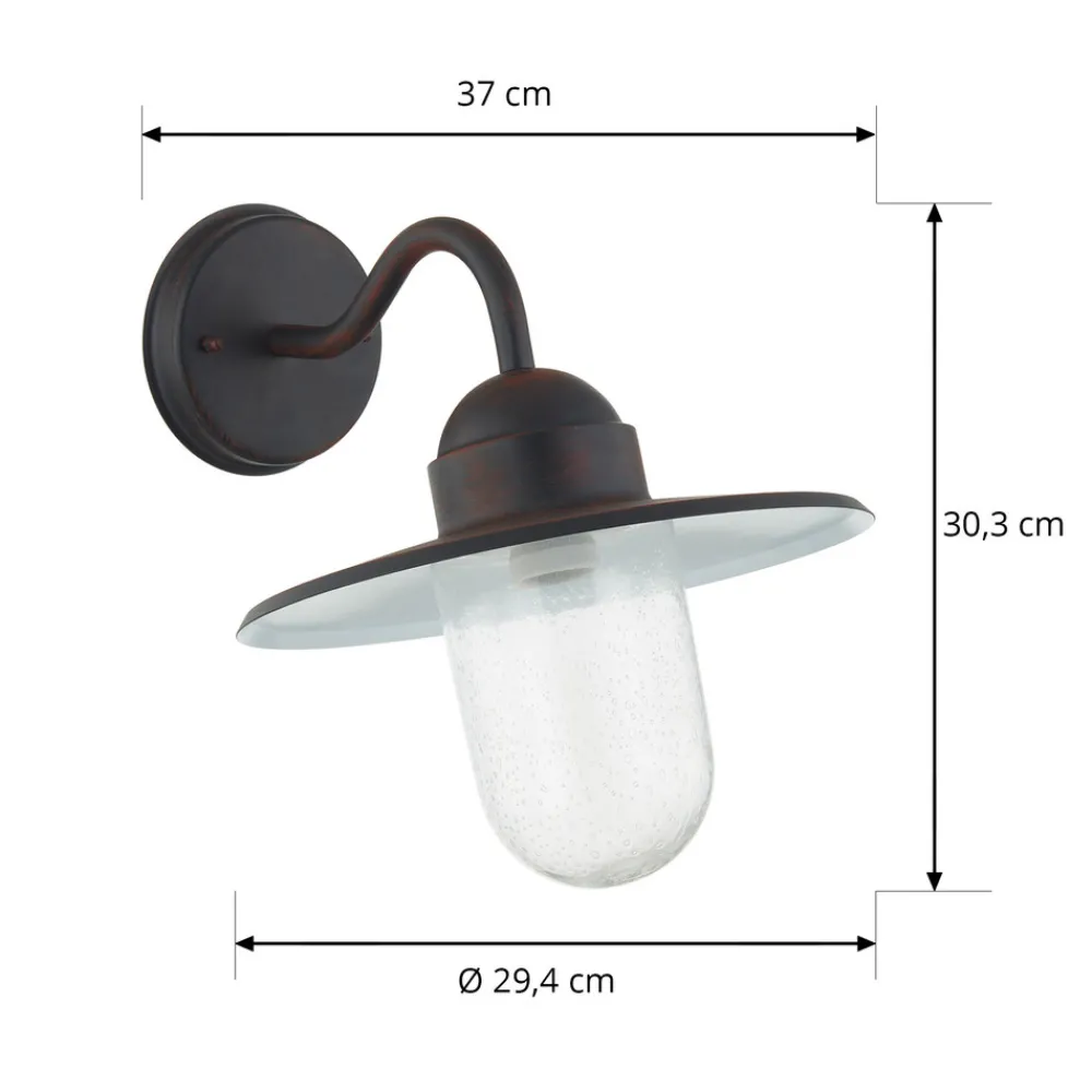 Lindby utendørs vegglampe Filip, rustbrun, 30 cm, E27, IP44