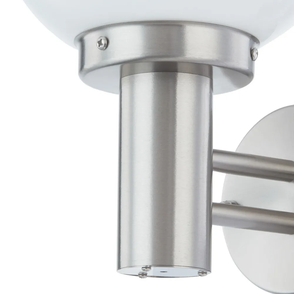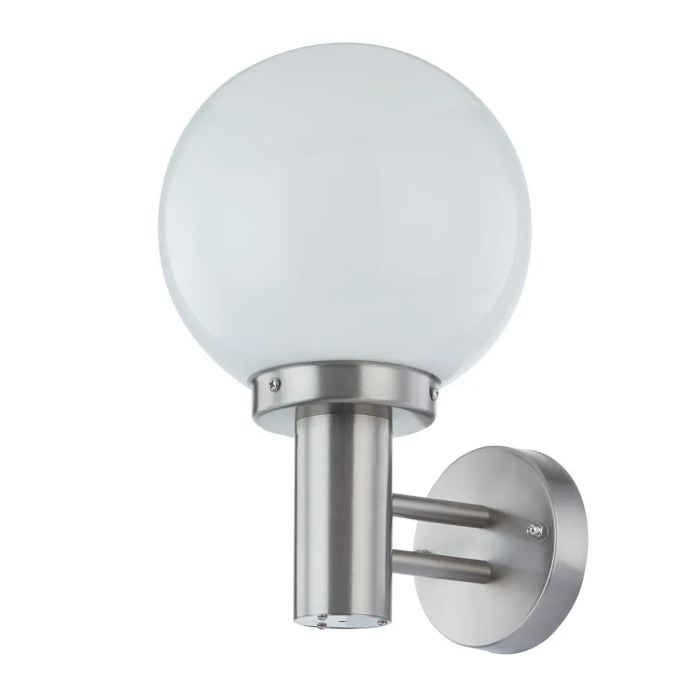 Nada har en opalvit skjerm i sfærisk glass og et stativ i rustfritt stål. Den består av et rundt veggfeste og to smale stag som peker mot den fremre delen av stativet. Der munner stativet i rustfritt stål ut i glasskulen som holder E27-pæren. Den opalhvite overflaten gir en spesielt myk lysfordeling, og utendørs vegglampen passer ikke bare til et moderne miljø, den ser også veldig stilig ut når den kombineres med et mer klassisk miljø.