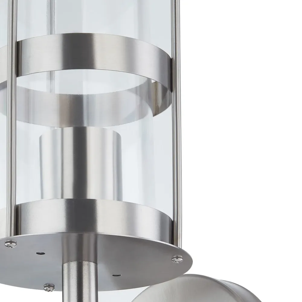 Noemi er en utendørs vegglampe som er utstyrt med en E27-pære. Fordi polycarbonatinnsatsen er klar og man har fri sikt til pæren, bør man derfor passe på å velge en passende optikk, slik man vanligvis kjenner fra tradisjonelle glødepærer eller fra de nye LED-filamentpærene, som har et svært likt utseende. Øverst har rustfritt stålrammen til utendørs vegglampen en lett kuppel, og samlet gir dette et tiltalende utseende.
