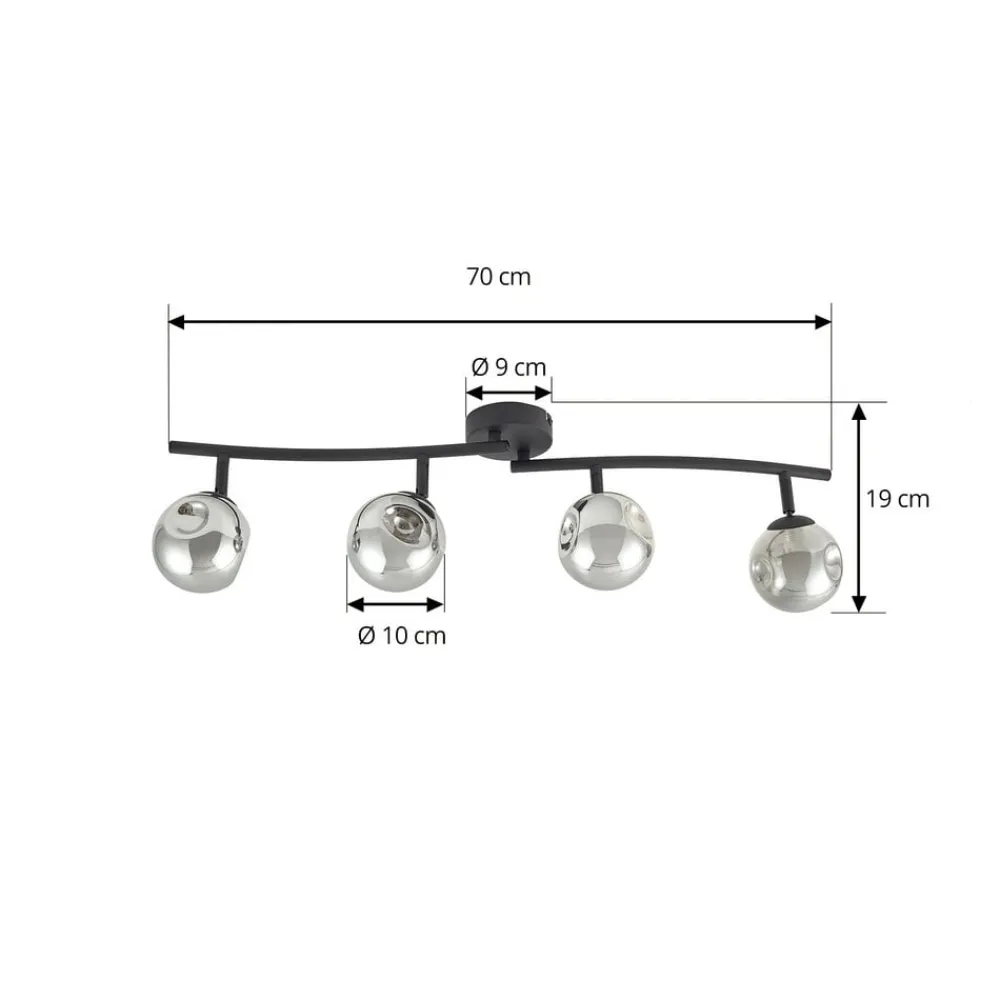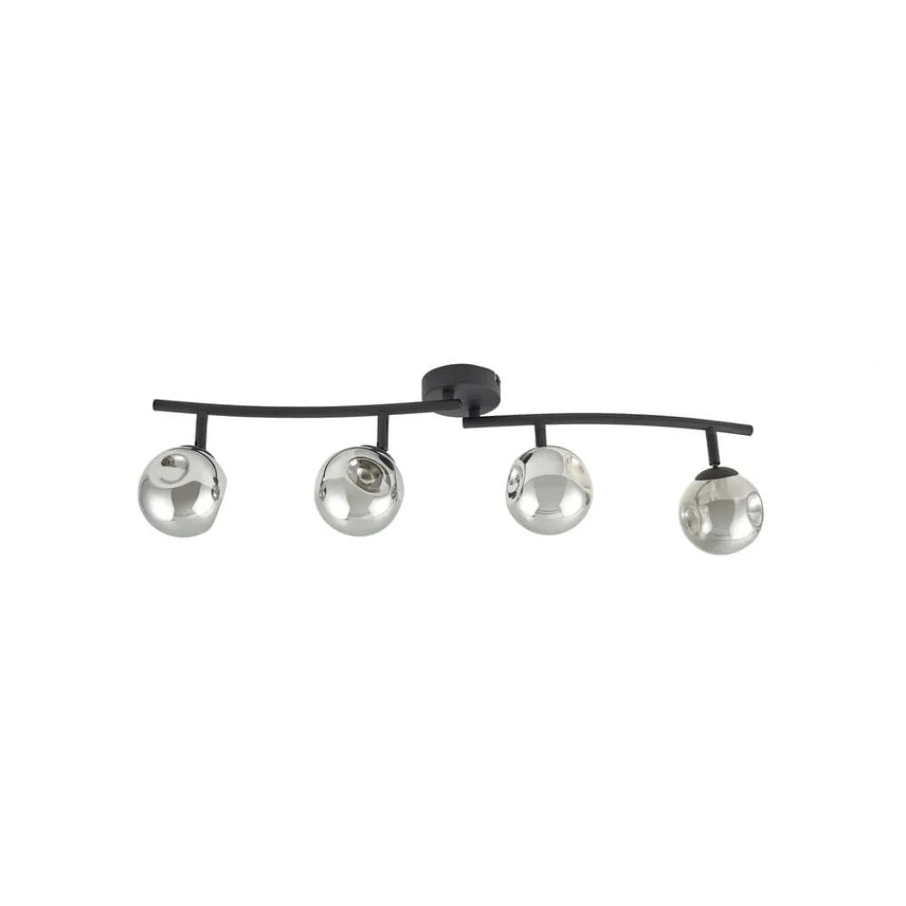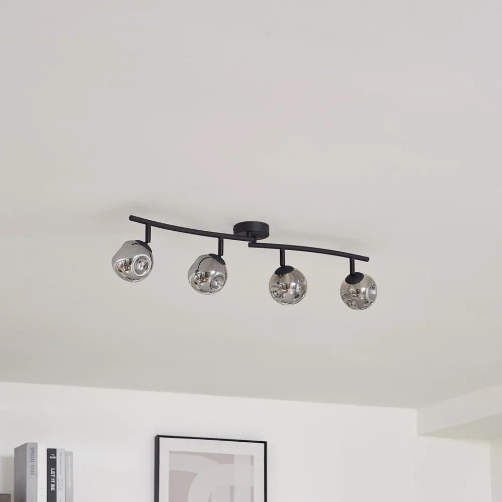 Lindby Valentina taklampe, grå/svart, 4 lyskilder, glass