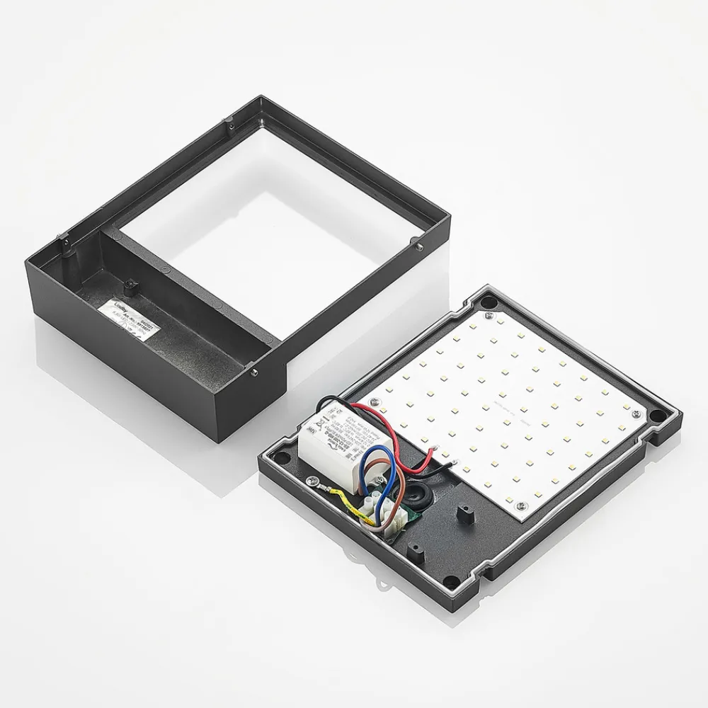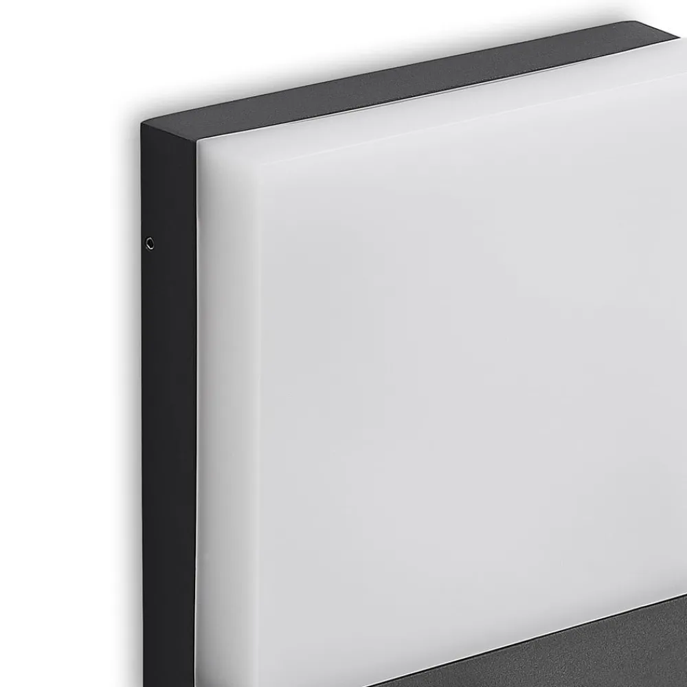 Vanira LED utendørs vegglampe har en tydelig strukturert design. Det firkantede huset ditt er laget av aluminium, mens den opale hvite lampeskjerm er laget av plast. Dette fungerer også som en diffusor og gjør at lyset kan dukke opp forsiktig og jevnt.