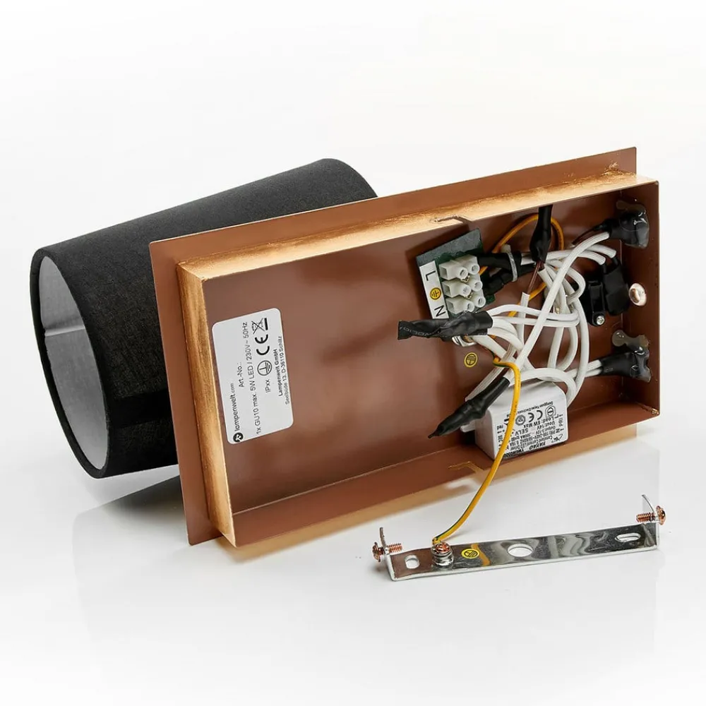 - Veggfeste – bredde 14 cm, høyde 25 cm; skjerm – Ø 14 cm, høyde 15 cm