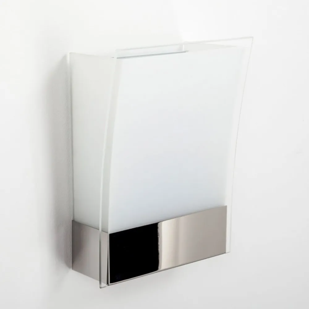 Vegglampe Malthe overbeviser med stil og eleganse. Den fremre glassblenden er lett skråstilt fremover, og glassplaten er for det meste satinert, men har en klar kant. Denne kombinasjonen virker svært elegant og passer til et moderne miljø. Den hvite satinerte glassflaten gir også en svært jevn lysfordeling, som vanligvis oppleves som behagelig. I den nedre enden kompletteres vegglampen av et kromelement, som skaper en harmonisk kontrast.